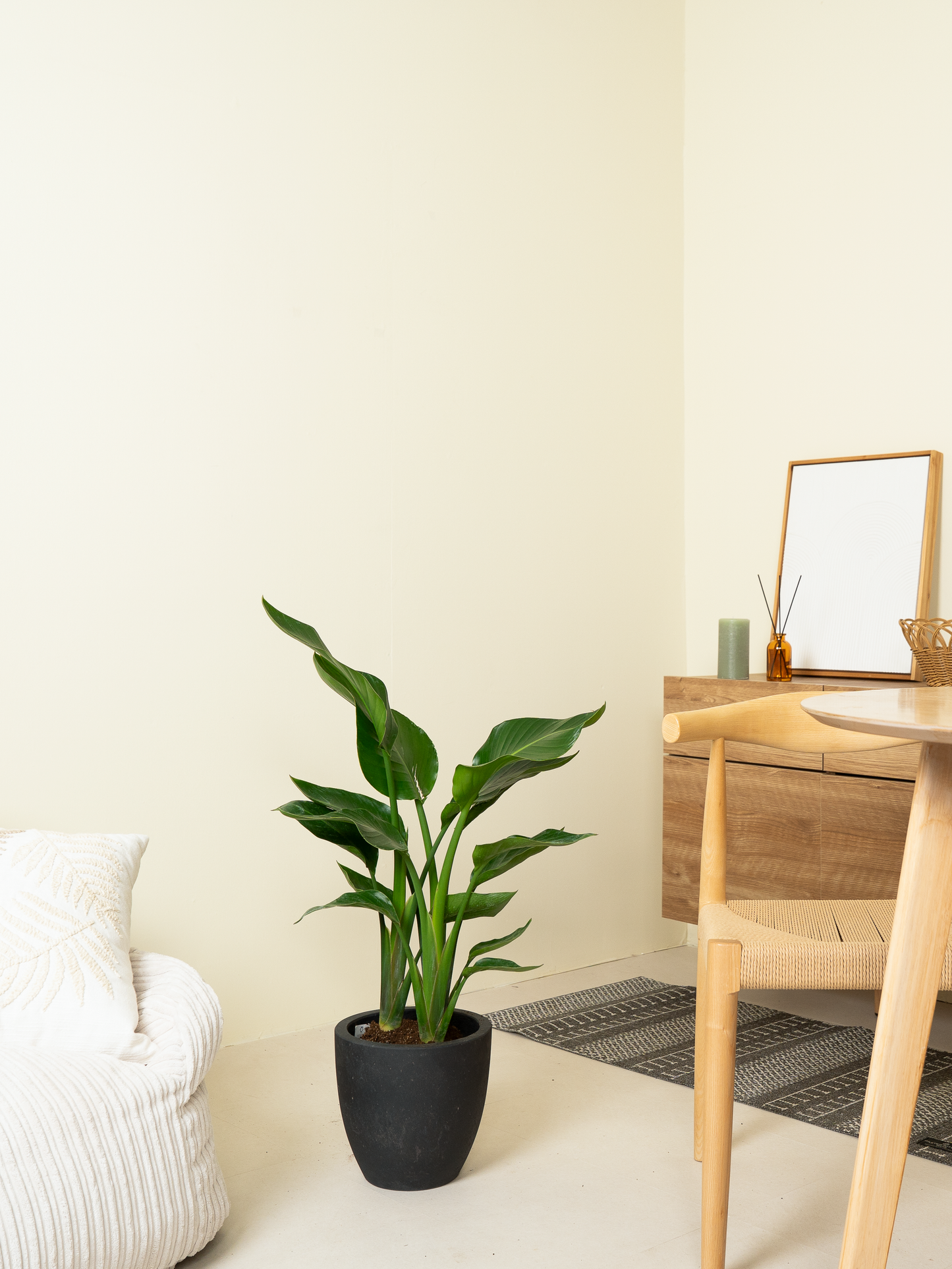 オーガスタは大きな葉が放射状に広がる、光沢のある葉が特徴的な観葉植物です。リゾート感がある植物なので、アジアンテイストやホテルライクなお部屋とよく合います。