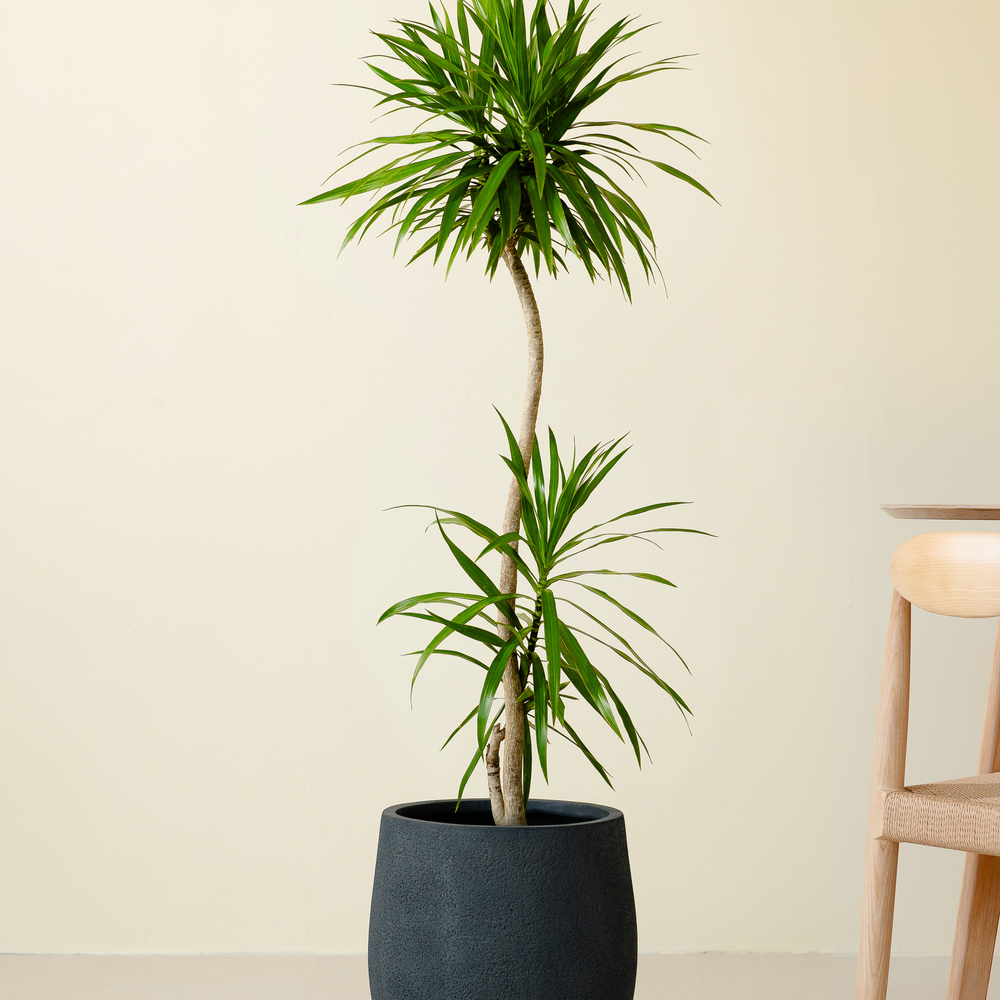 ドラセナナビーは緑の細長い葉が涼しげな観葉植物です。乾燥にも強く、非常に育てやすいので、初心者の方におすすめです。日光量が少ないと、幹が細り垂れる傾向にあるので、日当たりのいい場所に置いて管理してあげると綺麗に育ってくれます。