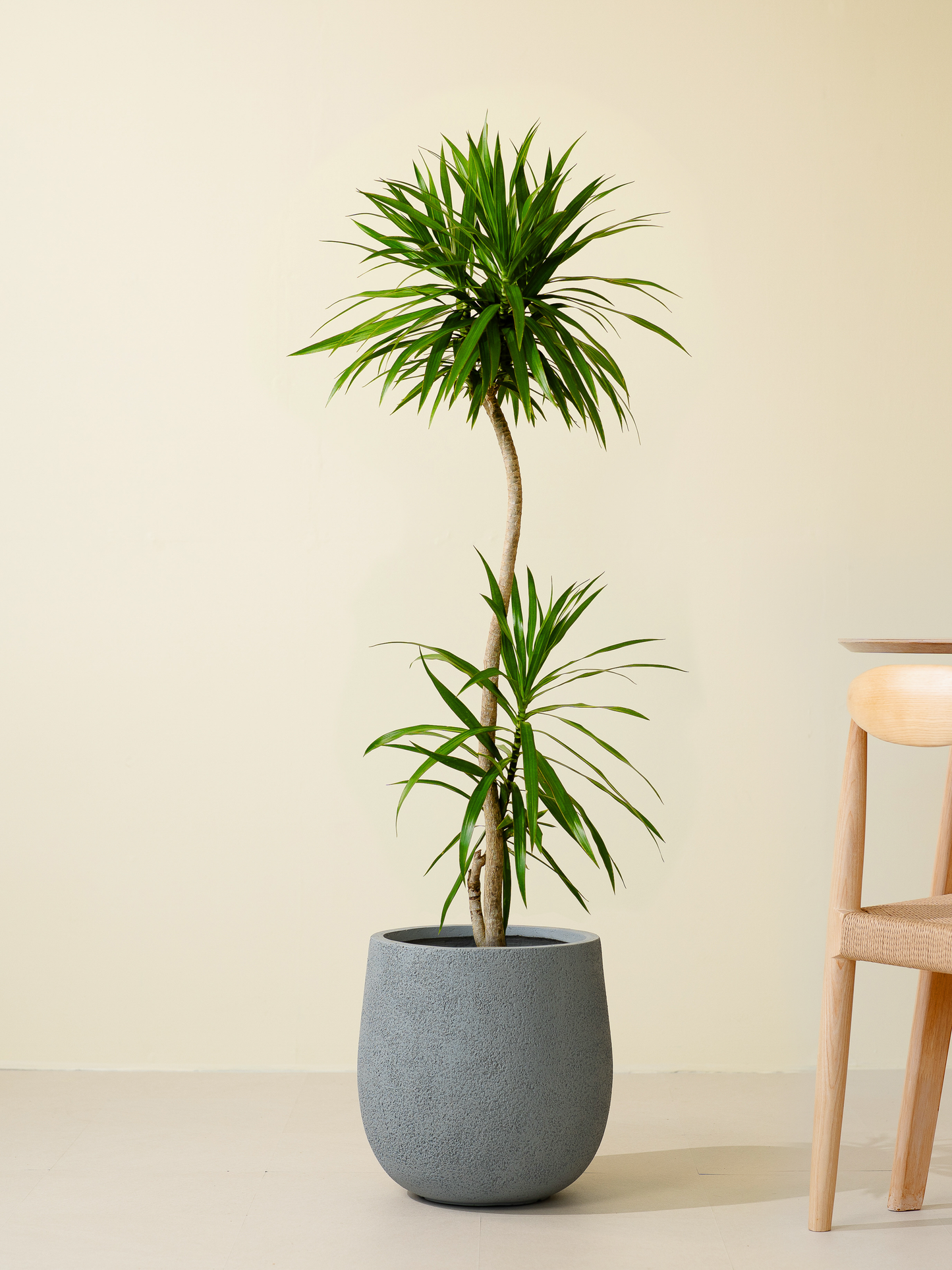 ドラセナナビーは緑の細長い葉が涼しげな観葉植物です。乾燥にも強く、非常に育てやすいので、初心者の方におすすめです。日光量が少ないと、幹が細り垂れる傾向にあるので、日当たりのいい場所に置いて管理してあげると綺麗に育ってくれます。