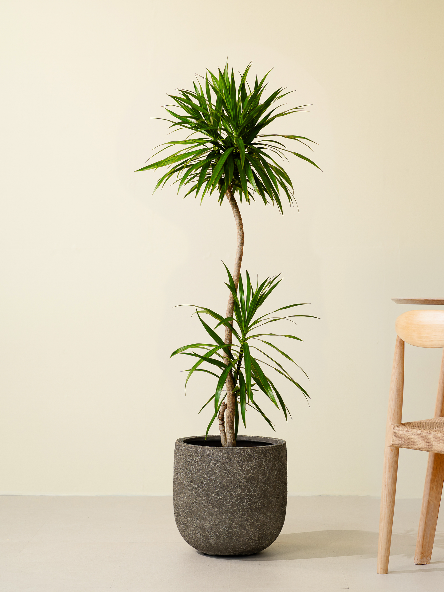 ドラセナナビーは緑の細長い葉が涼しげな観葉植物です。乾燥にも強く、非常に育てやすいので、初心者の方におすすめです。日光量が少ないと、幹が細り垂れる傾向にあるので、日当たりのいい場所に置いて管理してあげると綺麗に育ってくれます。