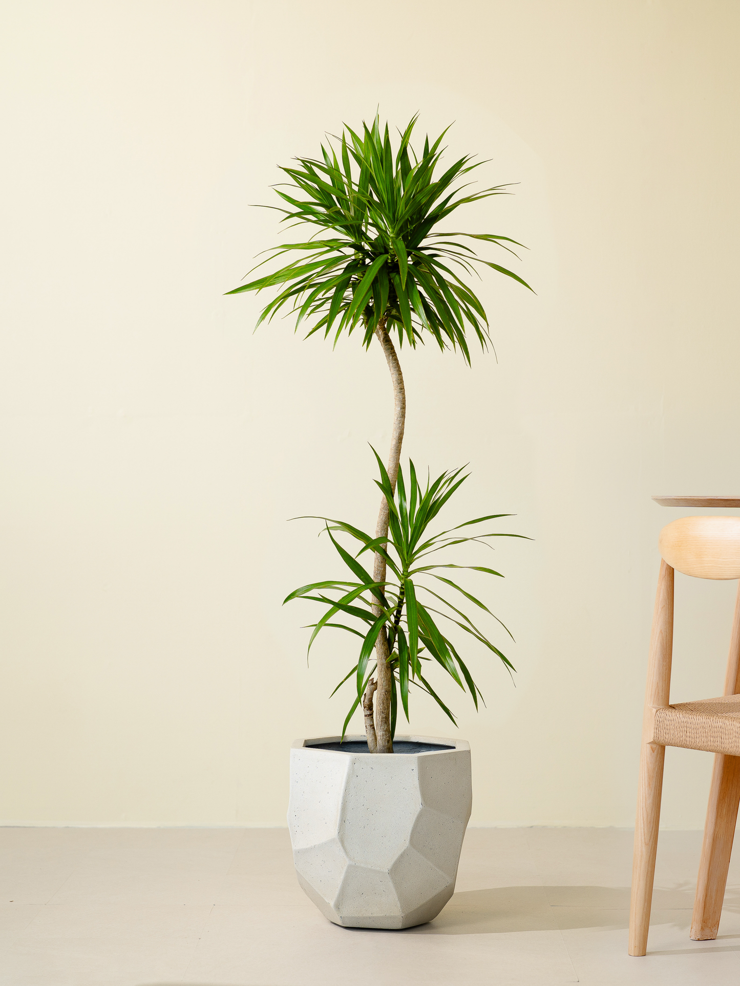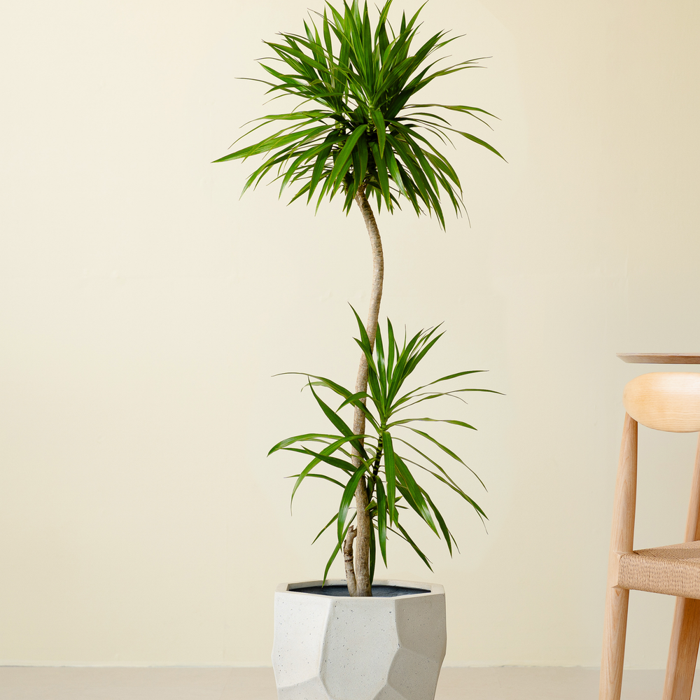 ドラセナナビーは緑の細長い葉が涼しげな観葉植物です。乾燥にも強く、非常に育てやすいので、初心者の方におすすめです。日光量が少ないと、幹が細り垂れる傾向にあるので、日当たりのいい場所に置いて管理してあげると綺麗に育ってくれます。