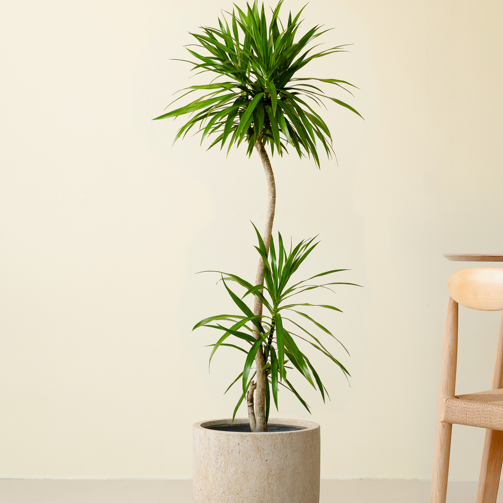 ドラセナナビーは緑の細長い葉が涼しげな観葉植物です。乾燥にも強く、非常に育てやすいので、初心者の方におすすめです。日光量が少ないと、幹が細り垂れる傾向にあるので、日当たりのいい場所に置いて管理してあげると綺麗に育ってくれます。