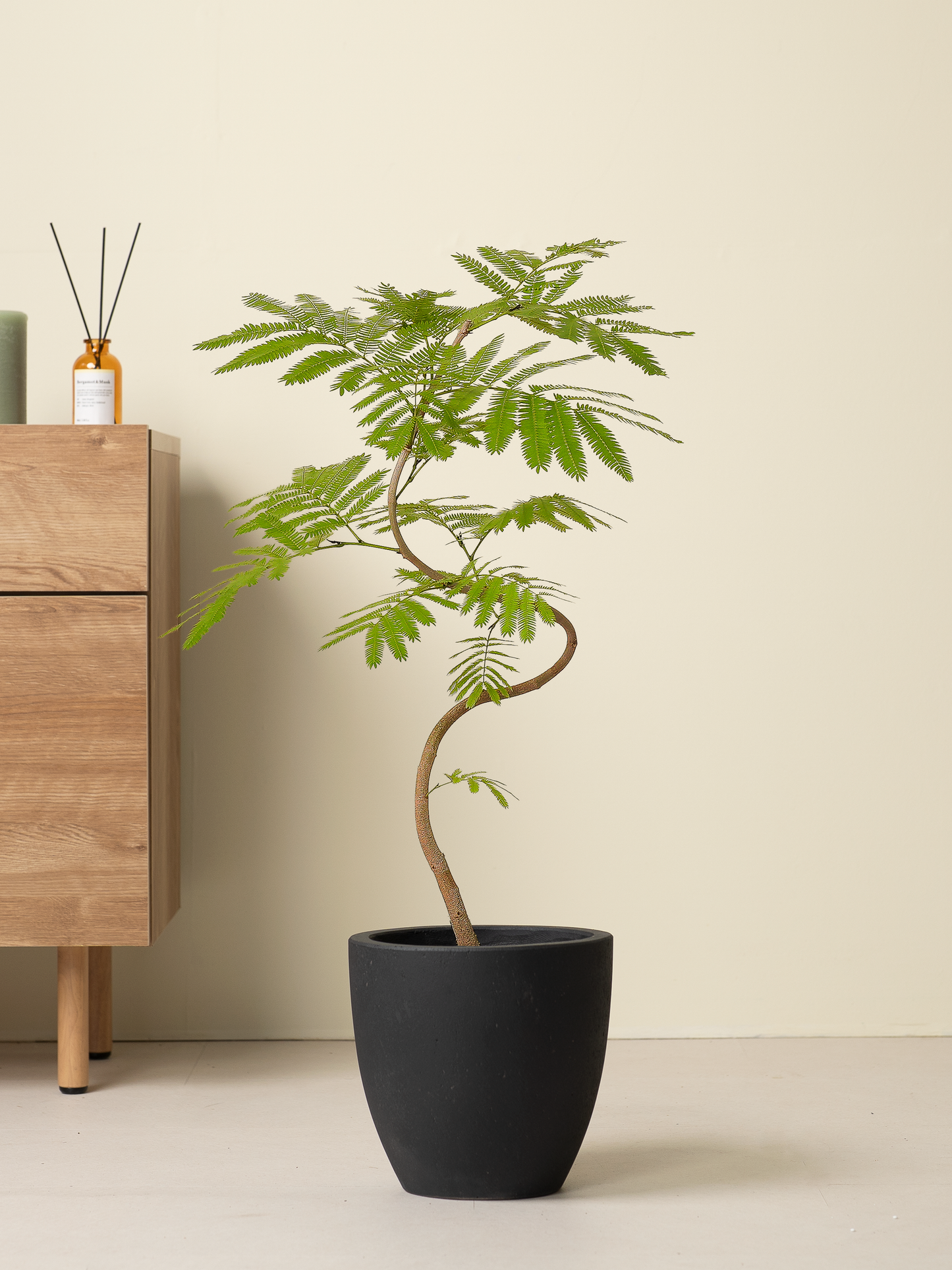 エバーフレッシュは細かい葉が涼しげな観葉植物です。夜には葉を閉じ眠る植物のため、日々の変化を感じることができます。インテリア性が高いので、お部屋のシンボルとしてとても人気があります。