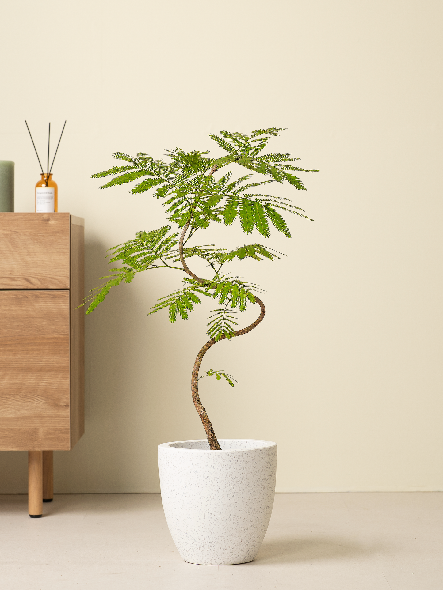 エバーフレッシュは細かい葉が涼しげな観葉植物です。夜には葉を閉じ眠る植物のため、日々の変化を感じることができます。インテリア性が高いので、お部屋のシンボルとしてとても人気があります。