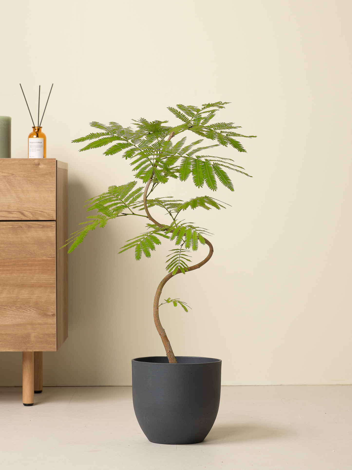 エバーフレッシュは細かい葉が涼しげな観葉植物です。夜には葉を閉じ眠る植物のため、日々の変化を感じることができます。インテリア性が高いので、お部屋のシンボルとしてとても人気があります。