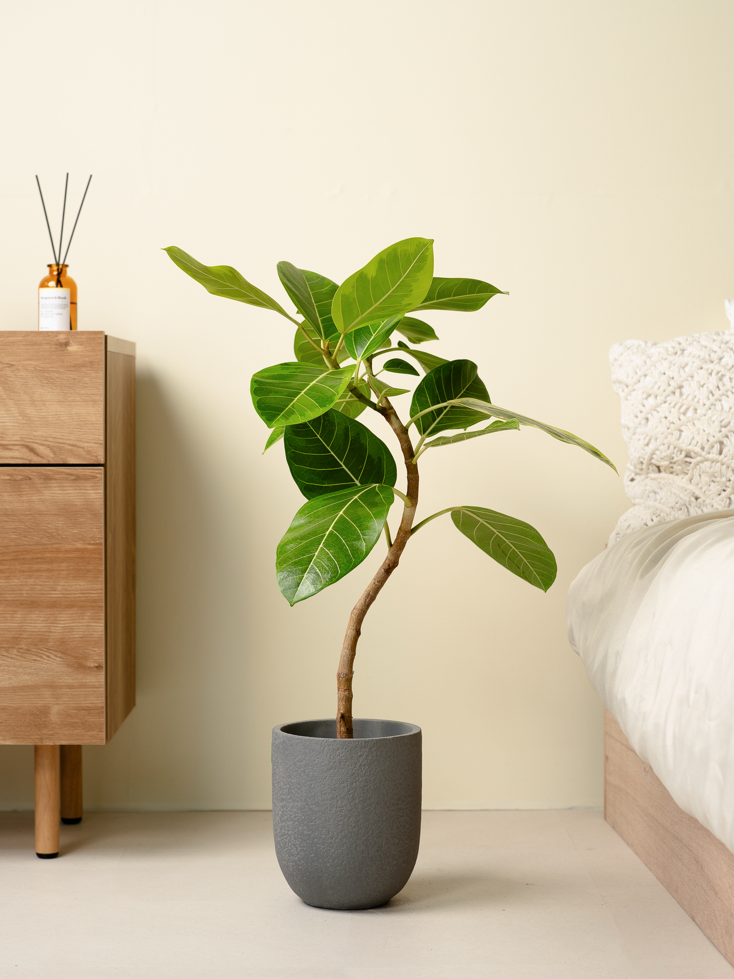 フィカスアルテシーマは、緑と黄色のコントラストが美しい観葉植物です。「永遠の幸せ」という花言葉があるので、ギフトにも最適。葉の色が明るいので、お部屋にアクセントを加えたい、明るい印象にしたいという方におすすめです。