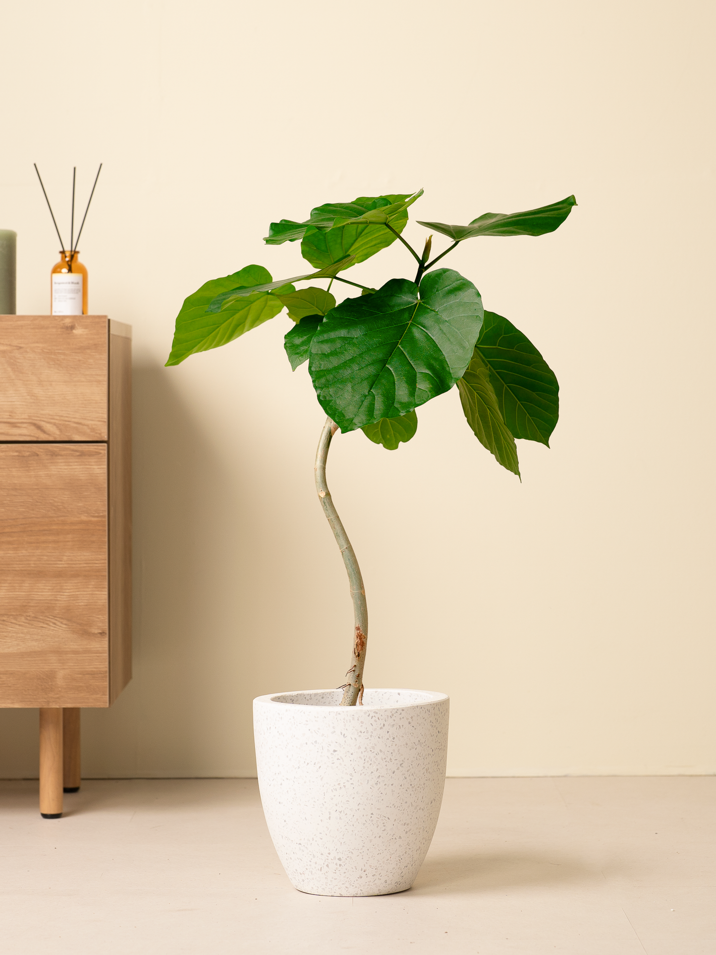 フィカスウンベラータは、大きなハート型をした葉が特徴的な植物です。「永遠の幸せ」という花言葉があるので、ギフトにおすすめ。落ち着いた雰囲気の植物なため、ナチュラルなお部屋に特に馴染みます。