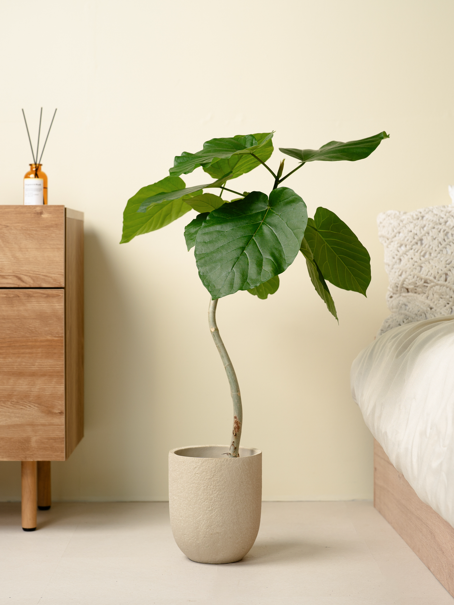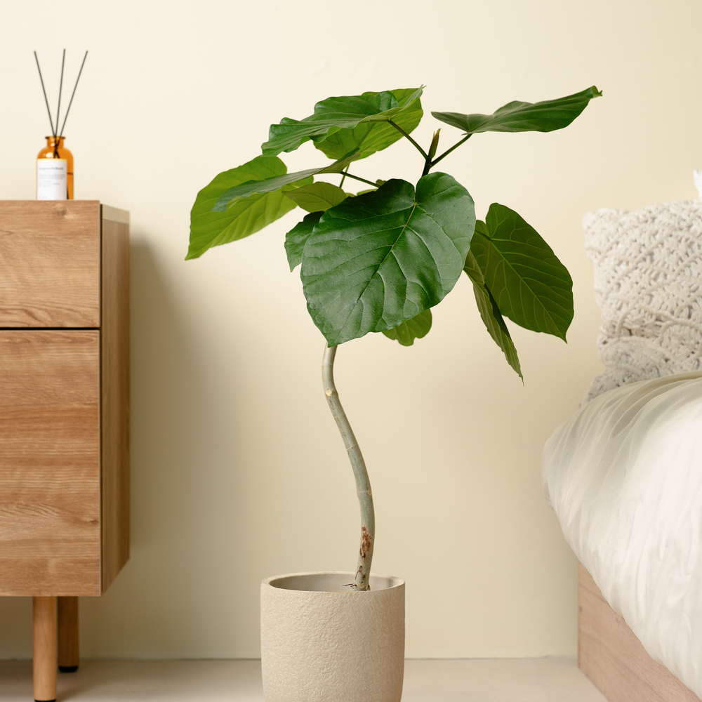 フィカスウンベラータは、大きなハート型をした葉が特徴的な植物です。「永遠の幸せ」という花言葉があるので、ギフトにおすすめ。落ち着いた雰囲気の植物なため、ナチュラルなお部屋に特に馴染みます。
