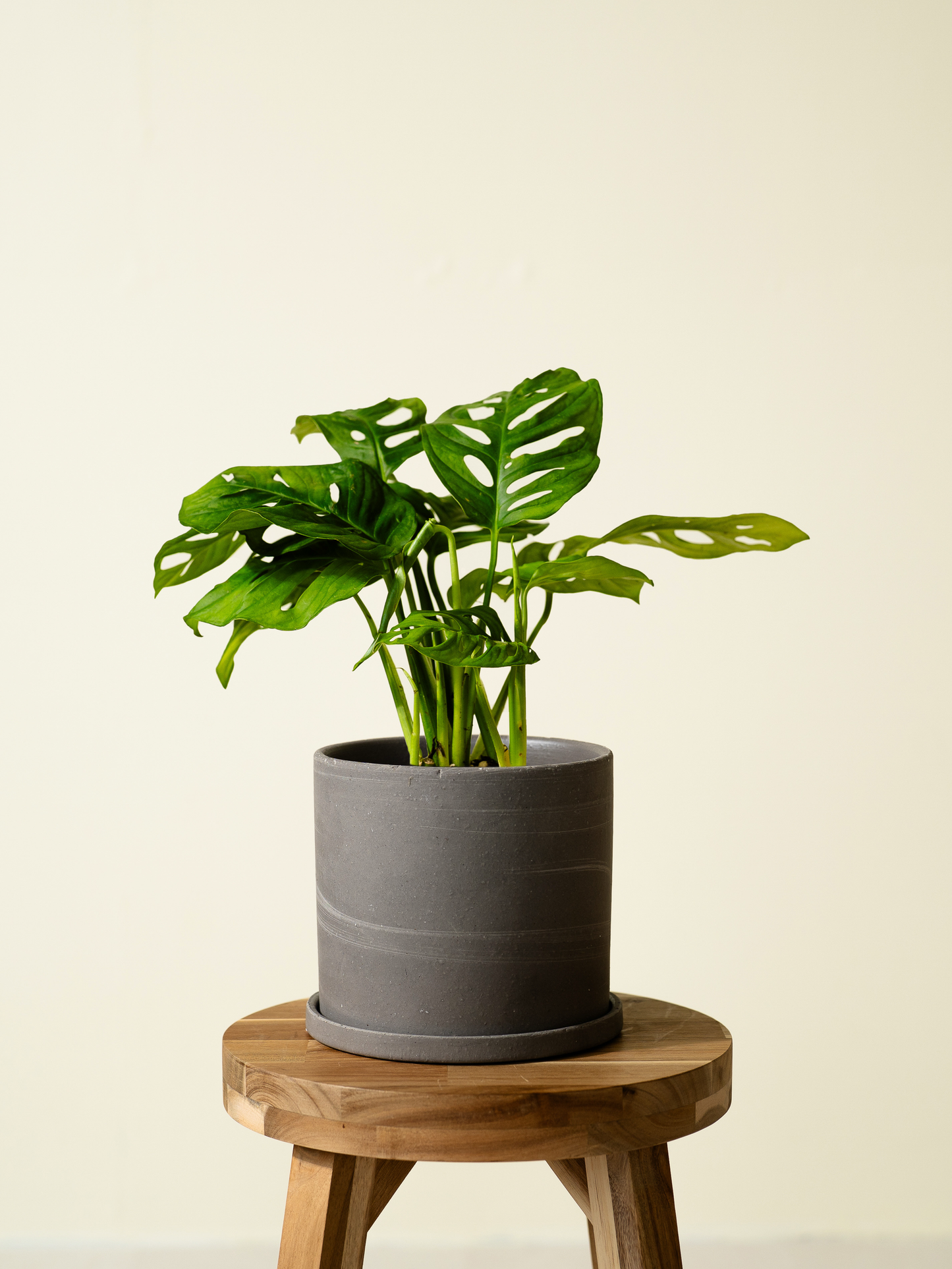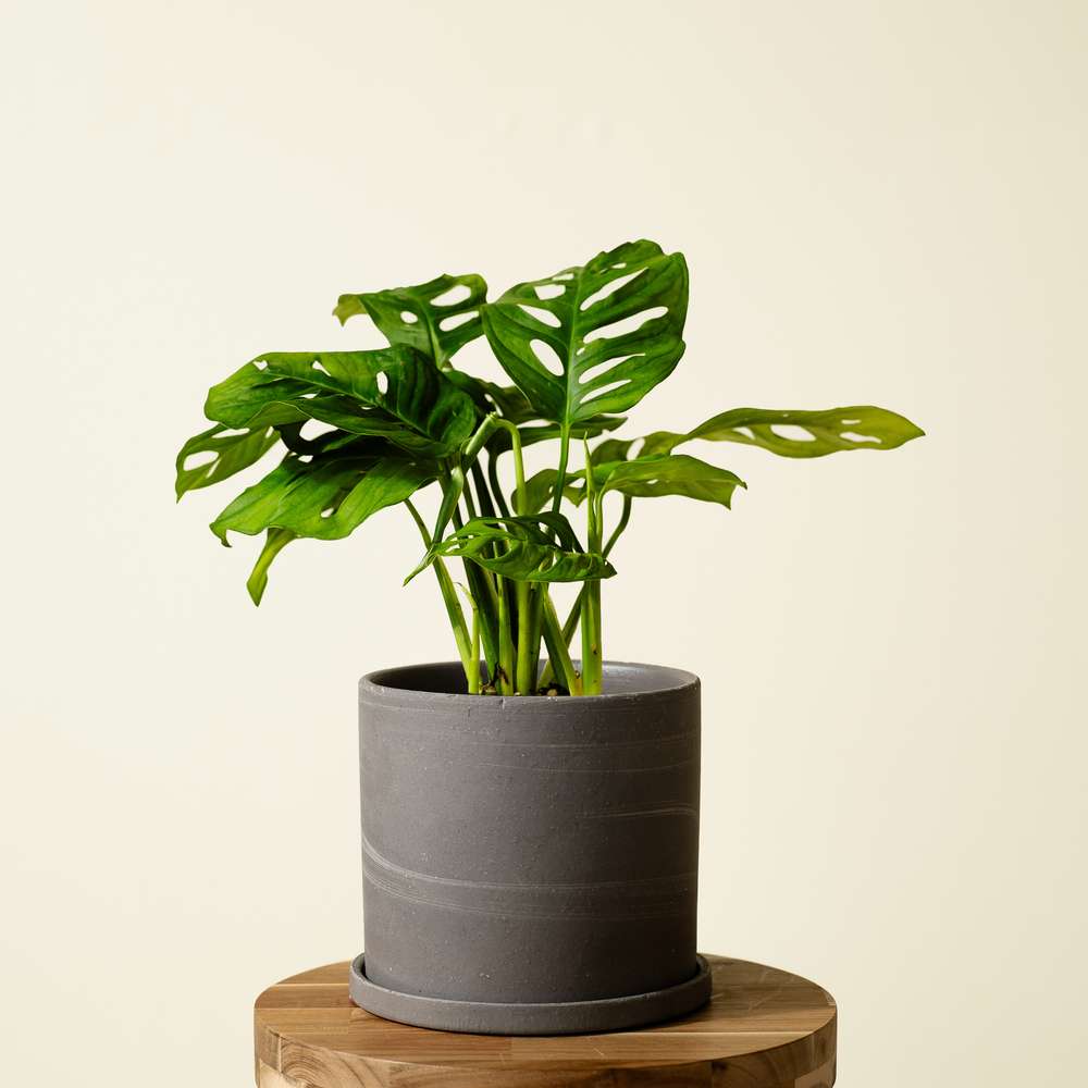 マドカズラは、穴の空いた葉が特徴的な観葉植物です。茎が伸びて垂れ下がる特性があるため、シェルフなど高さのある場所に置くことをおすすめします。