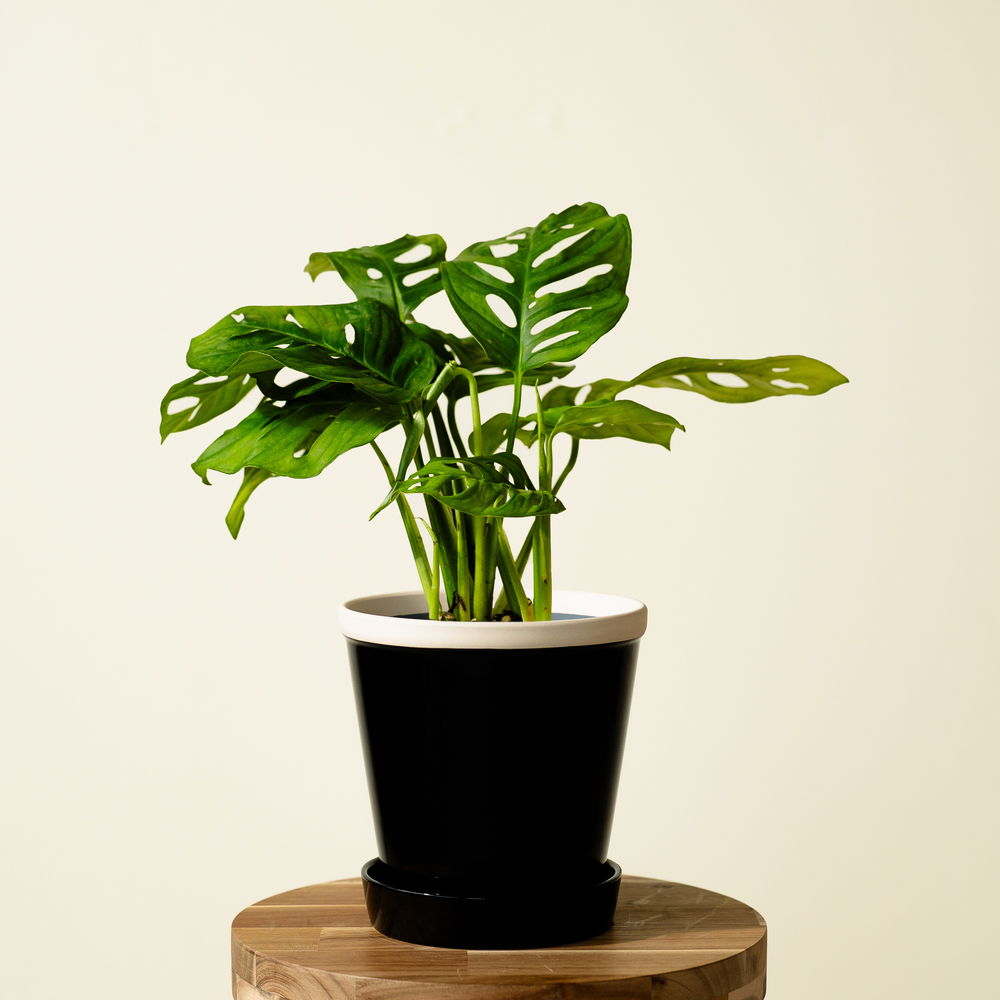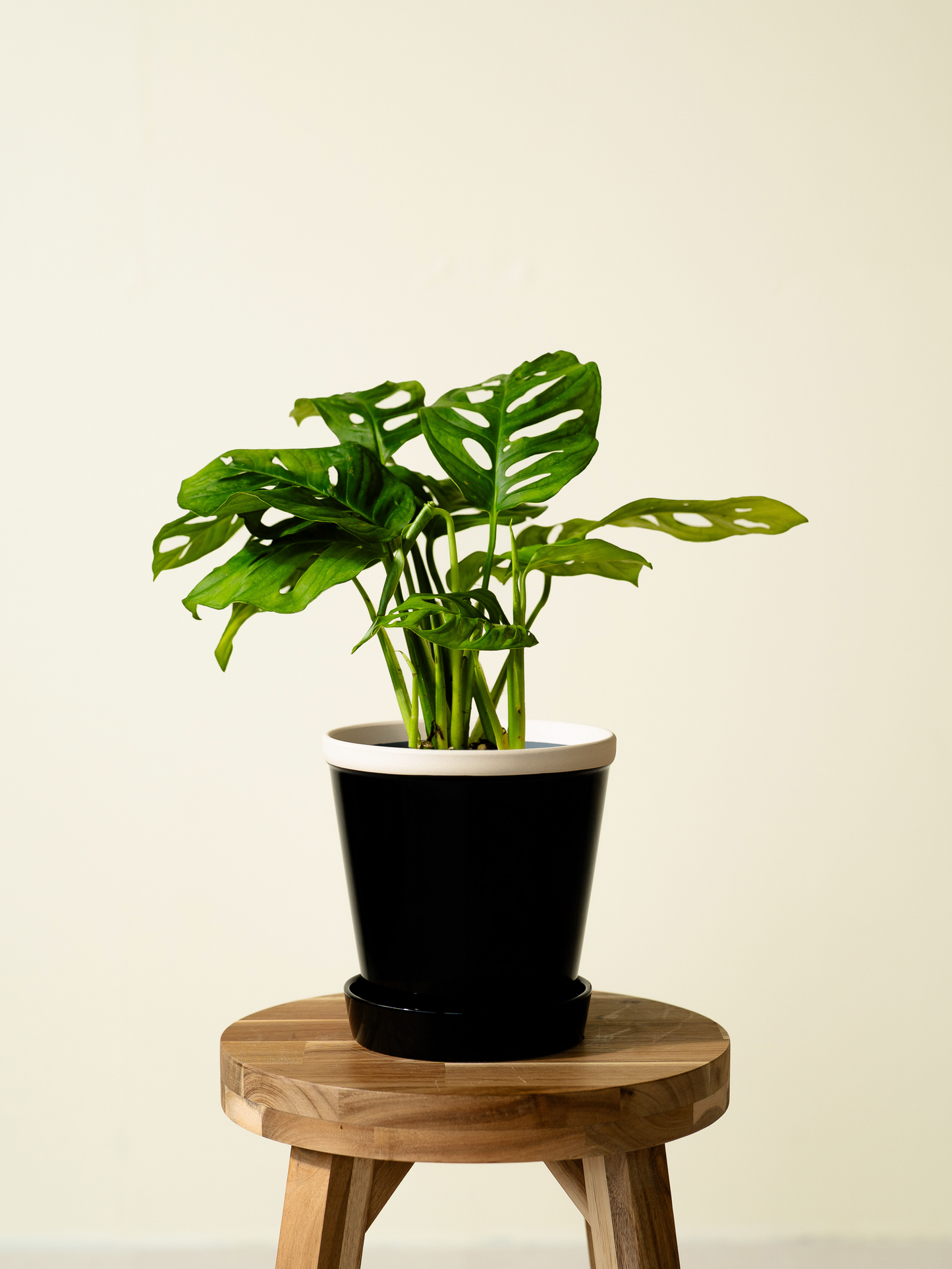 マドカズラは、穴の空いた葉が特徴的な観葉植物です。茎が伸びて垂れ下がる特性があるため、シェルフなど高さのある場所に置くことをおすすめします。