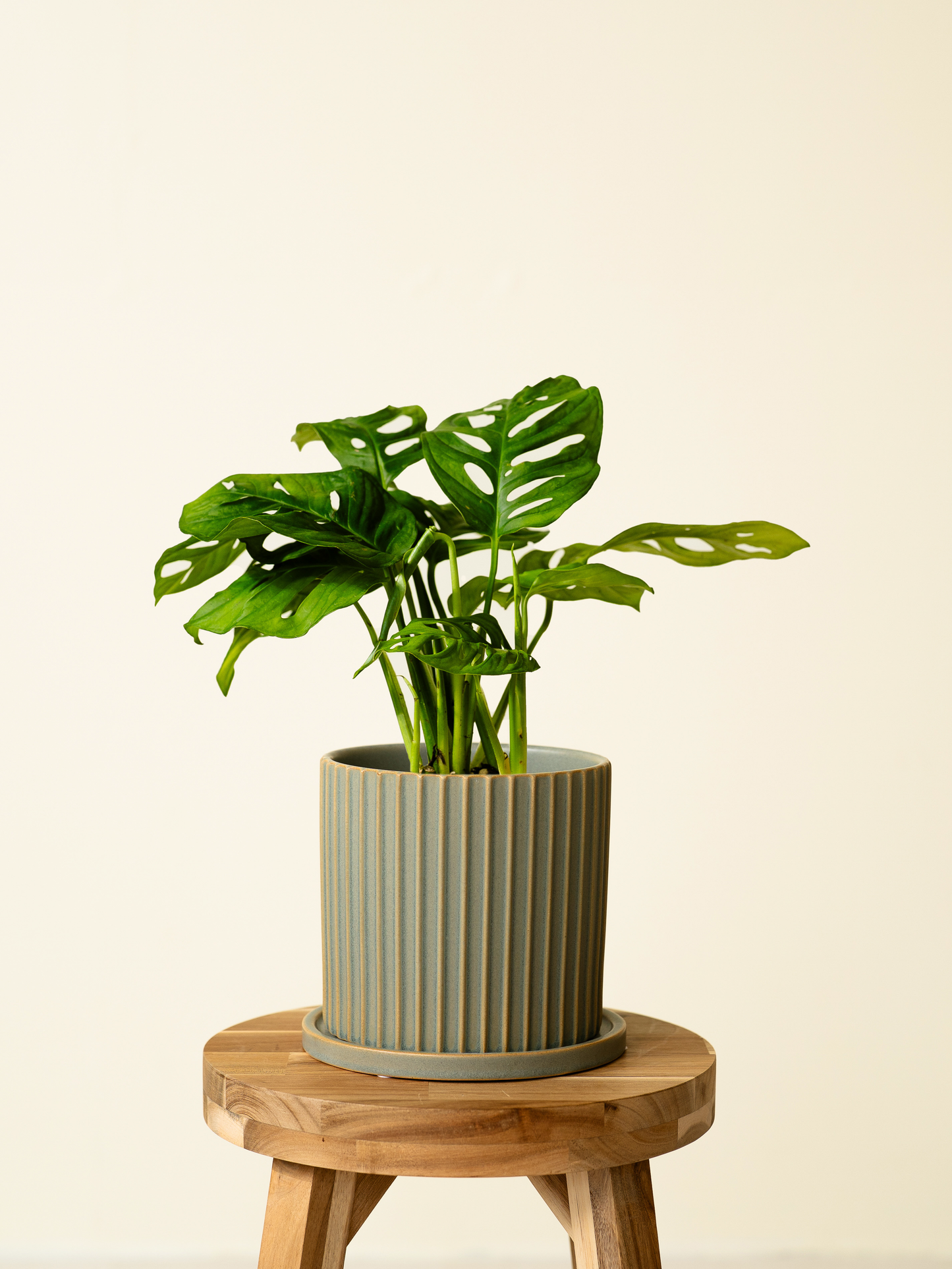 マドカズラは、穴の空いた葉が特徴的な観葉植物です。茎が伸びて垂れ下がる特性があるため、シェルフなど高さのある場所に置くことをおすすめします。