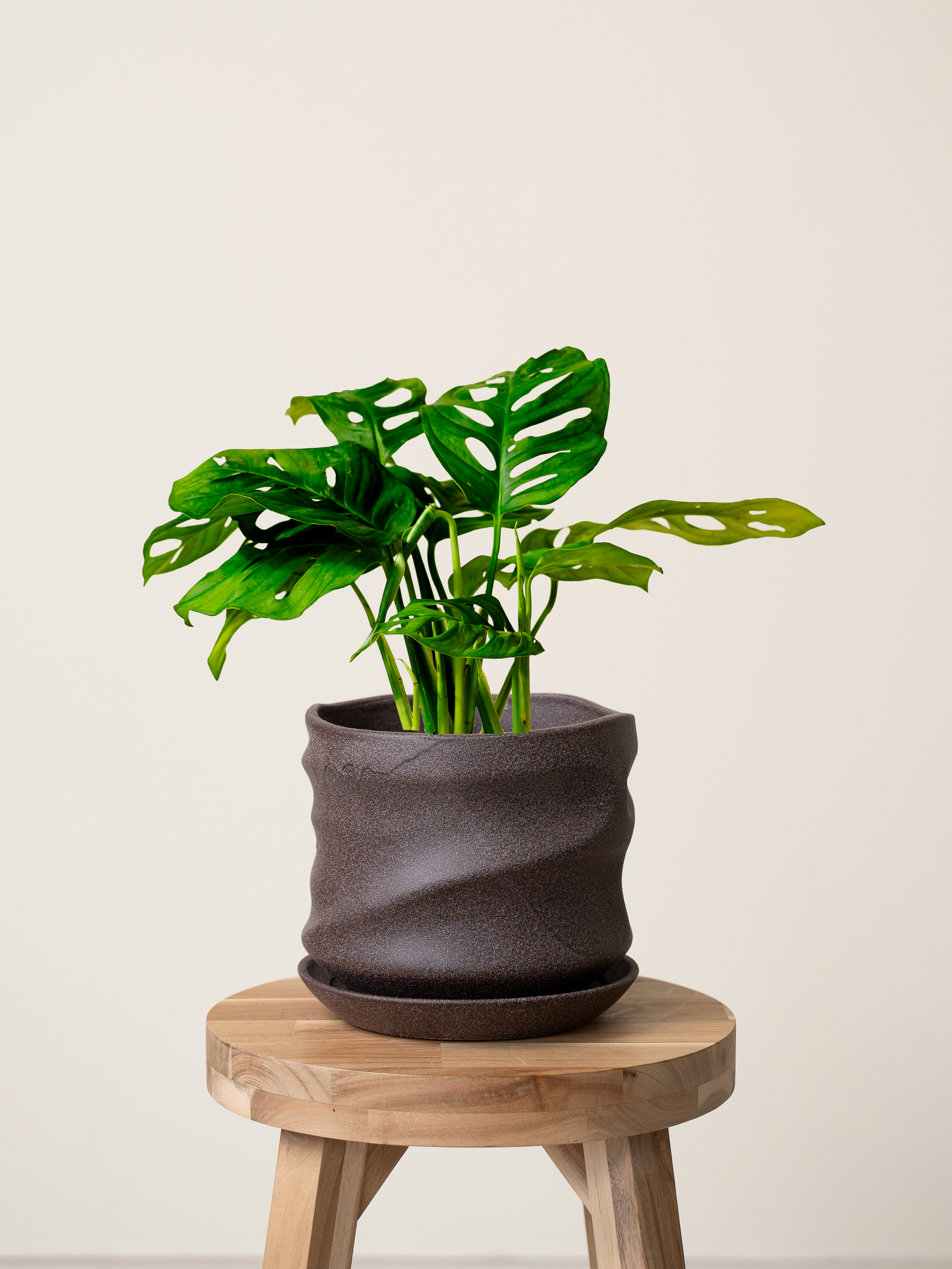 マドカズラは、穴の空いた葉が特徴的な観葉植物です。茎が伸びて垂れ下がる特性があるため、シェルフなど高さのある場所に置くことをおすすめします。