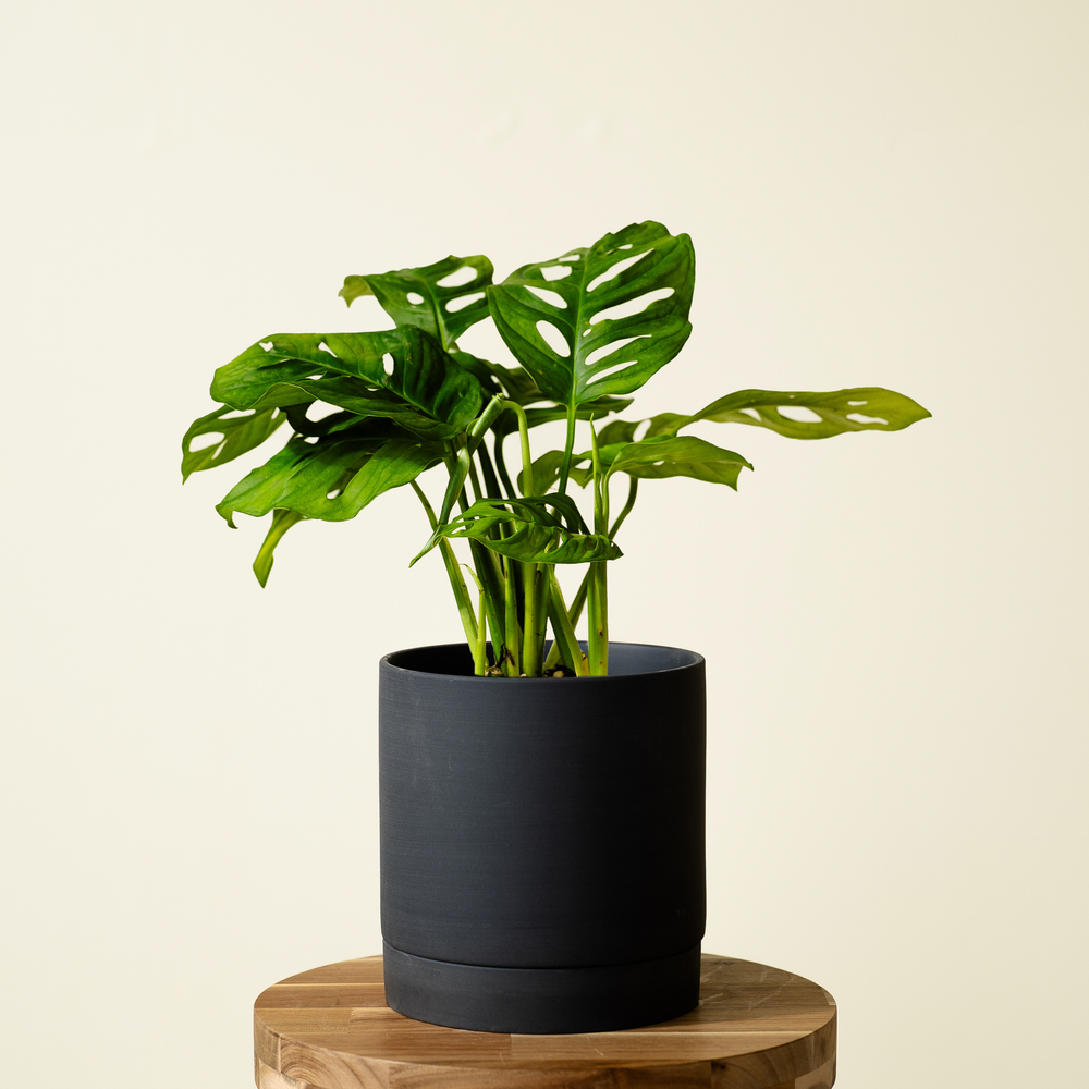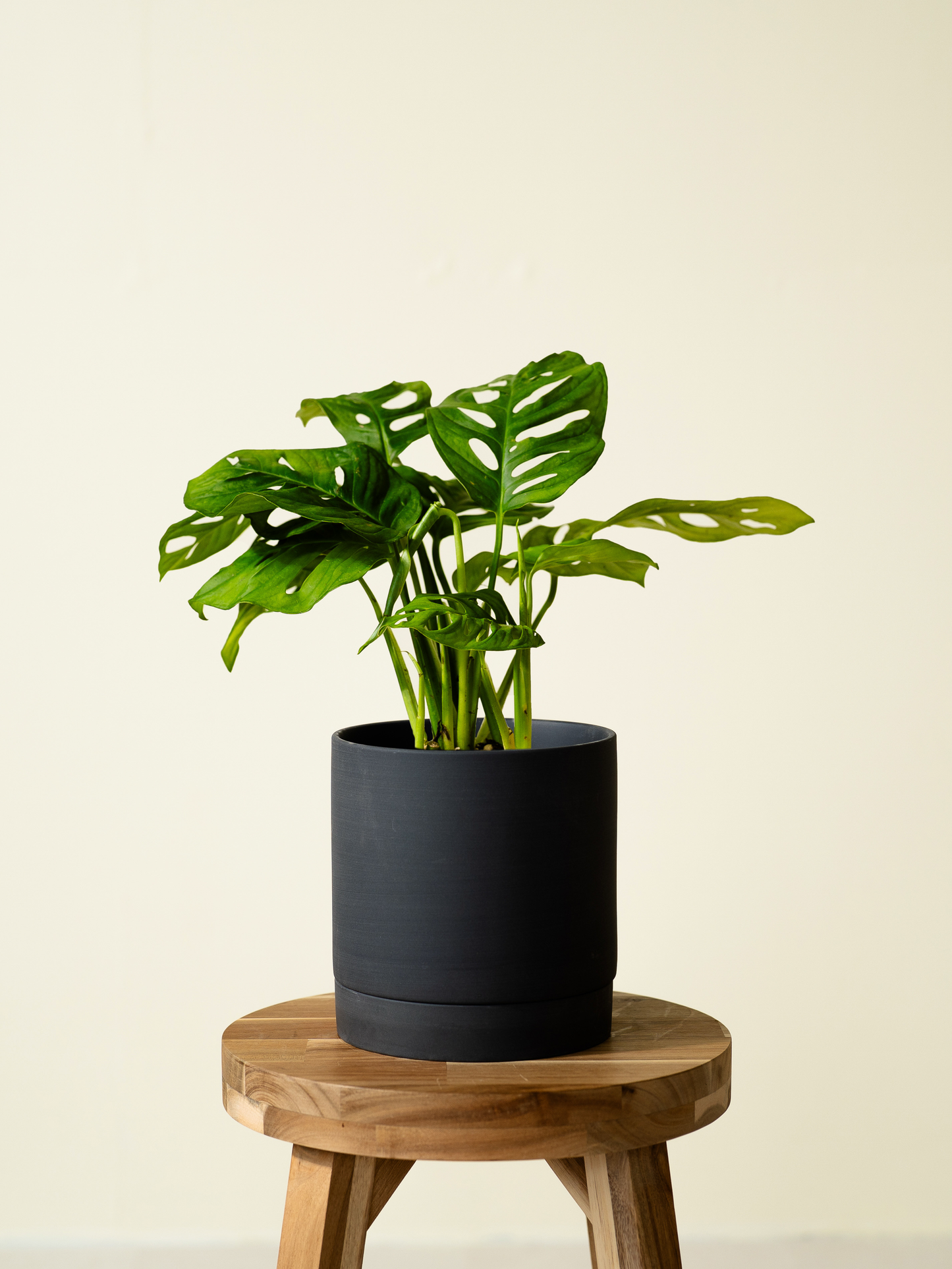 マドカズラは、穴の空いた葉が特徴的な観葉植物です。茎が伸びて垂れ下がる特性があるため、シェルフなど高さのある場所に置くことをおすすめします。