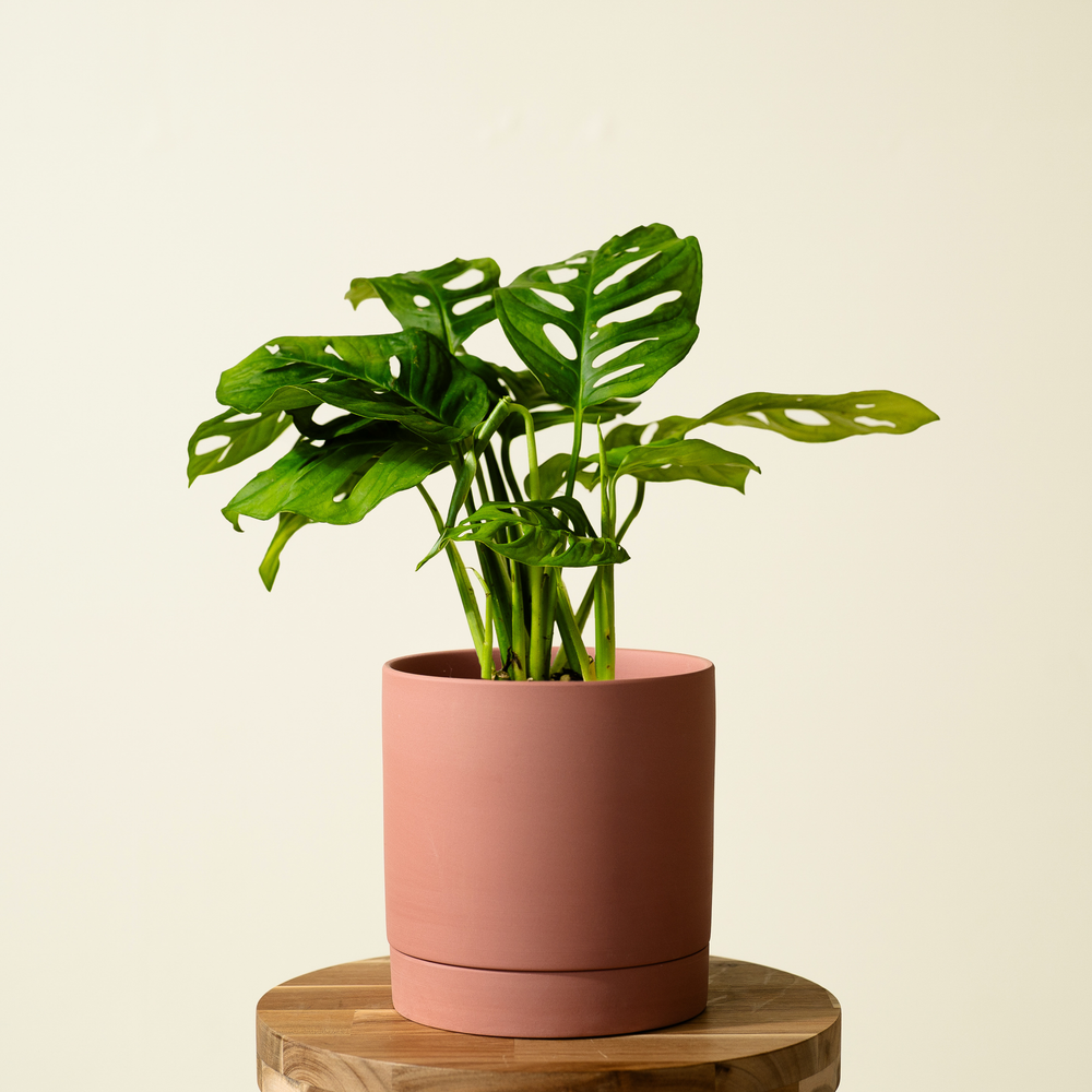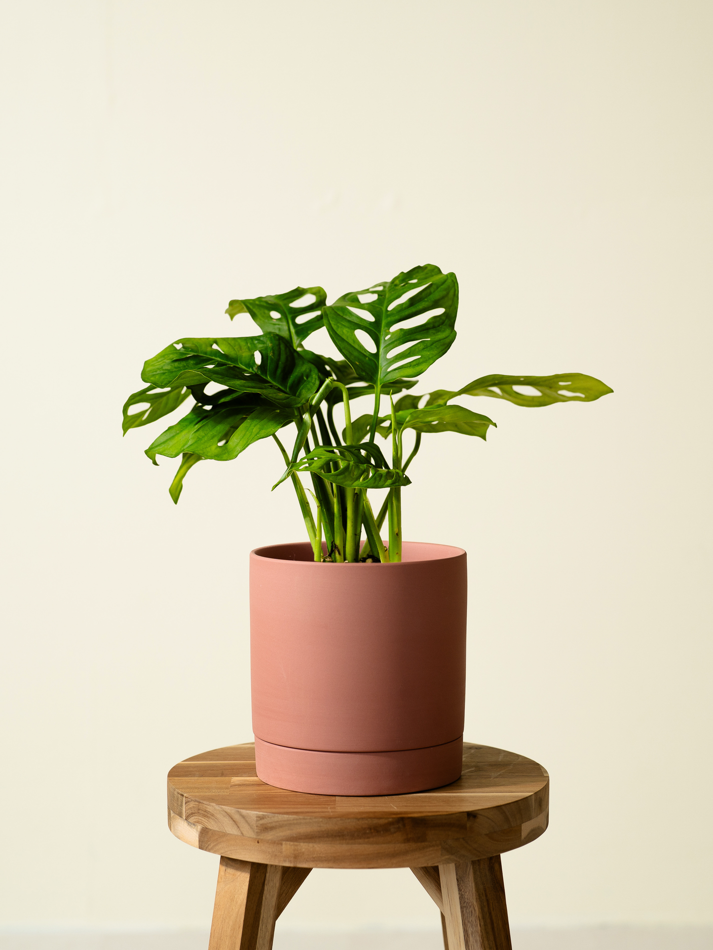 マドカズラは、穴の空いた葉が特徴的な観葉植物です。茎が伸びて垂れ下がる特性があるため、シェルフなど高さのある場所に置くことをおすすめします。