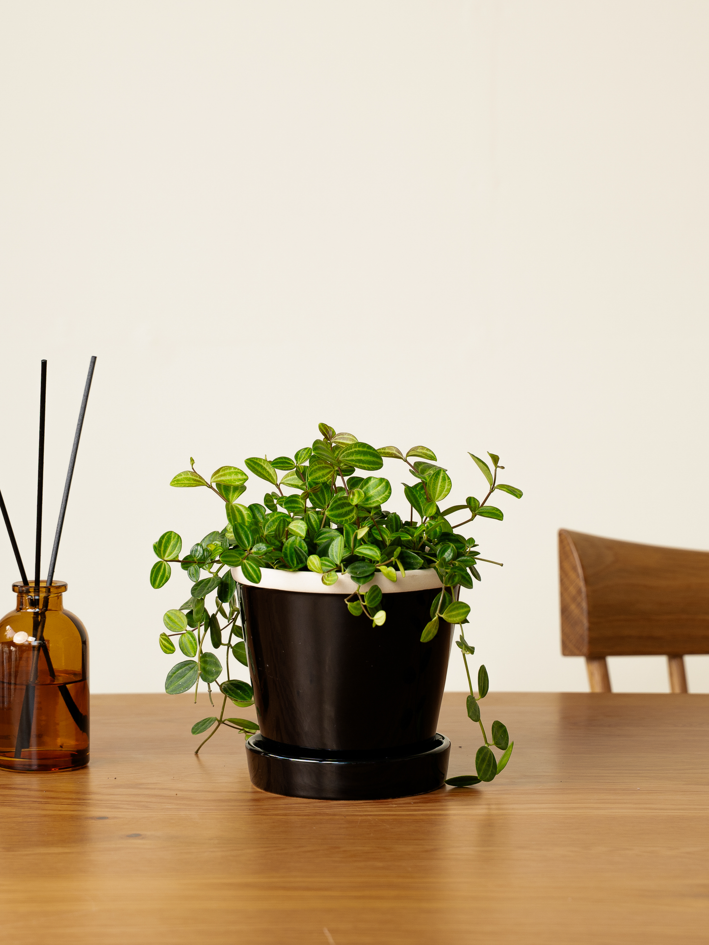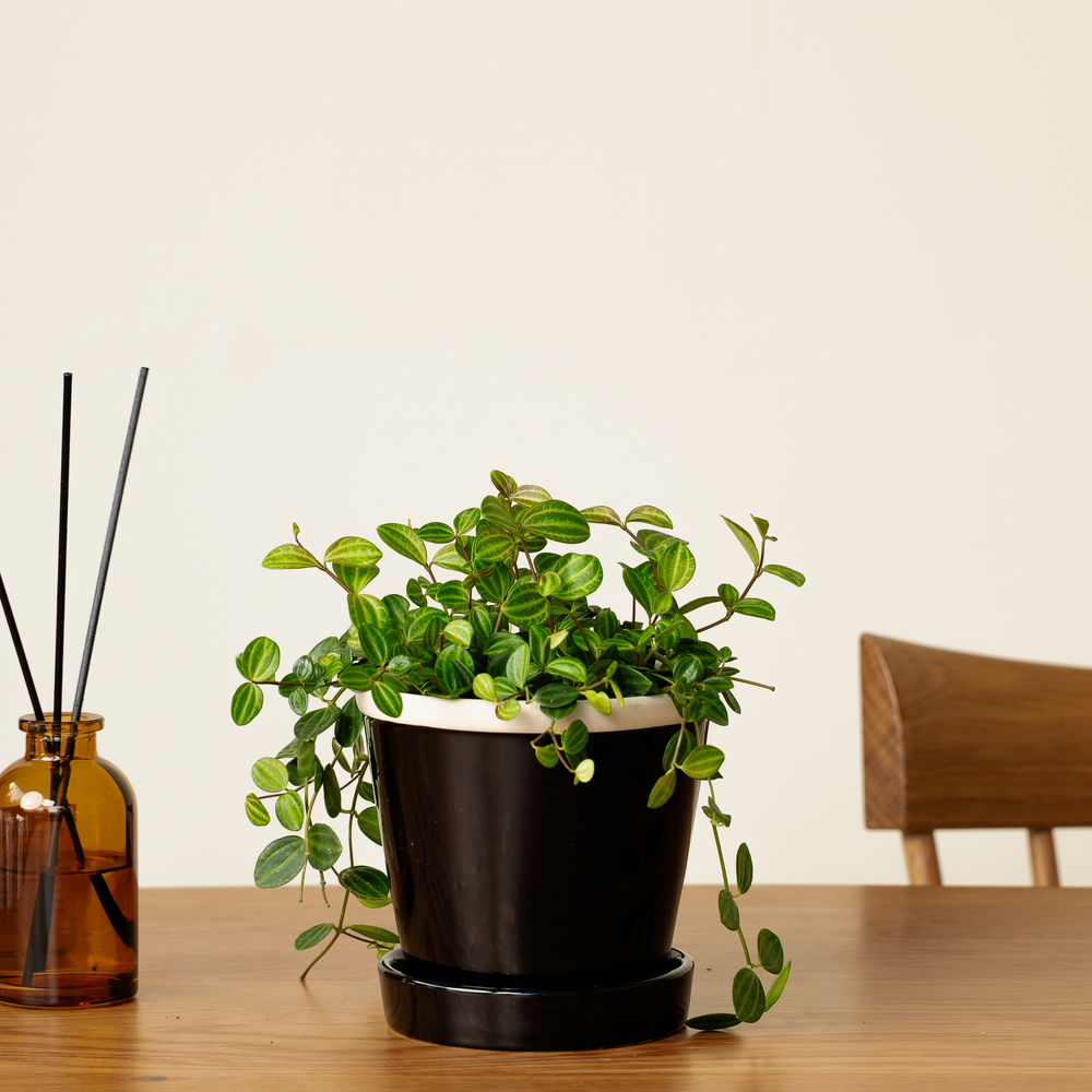 ペペロミアアングラータ S × グロッシーポットS ブラック