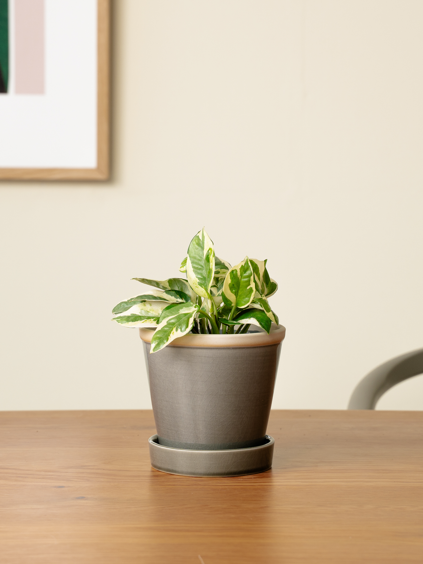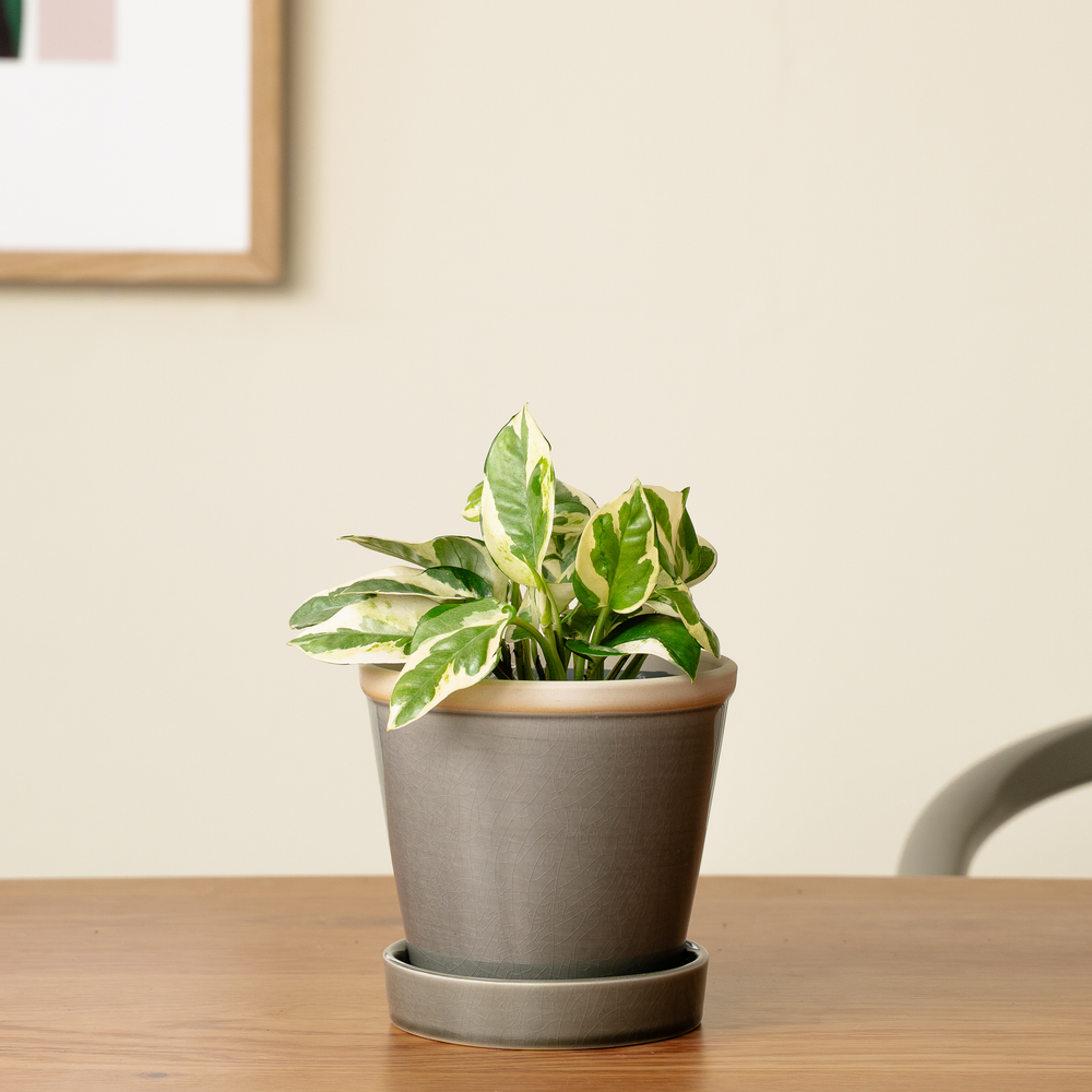 ポトスエンジョイは緑と白のコントラストが美しい観葉植物です。茎が伸びて垂れ下がってくるので、シェルフなどに高い場所に置いて飾ることをおすすめします。