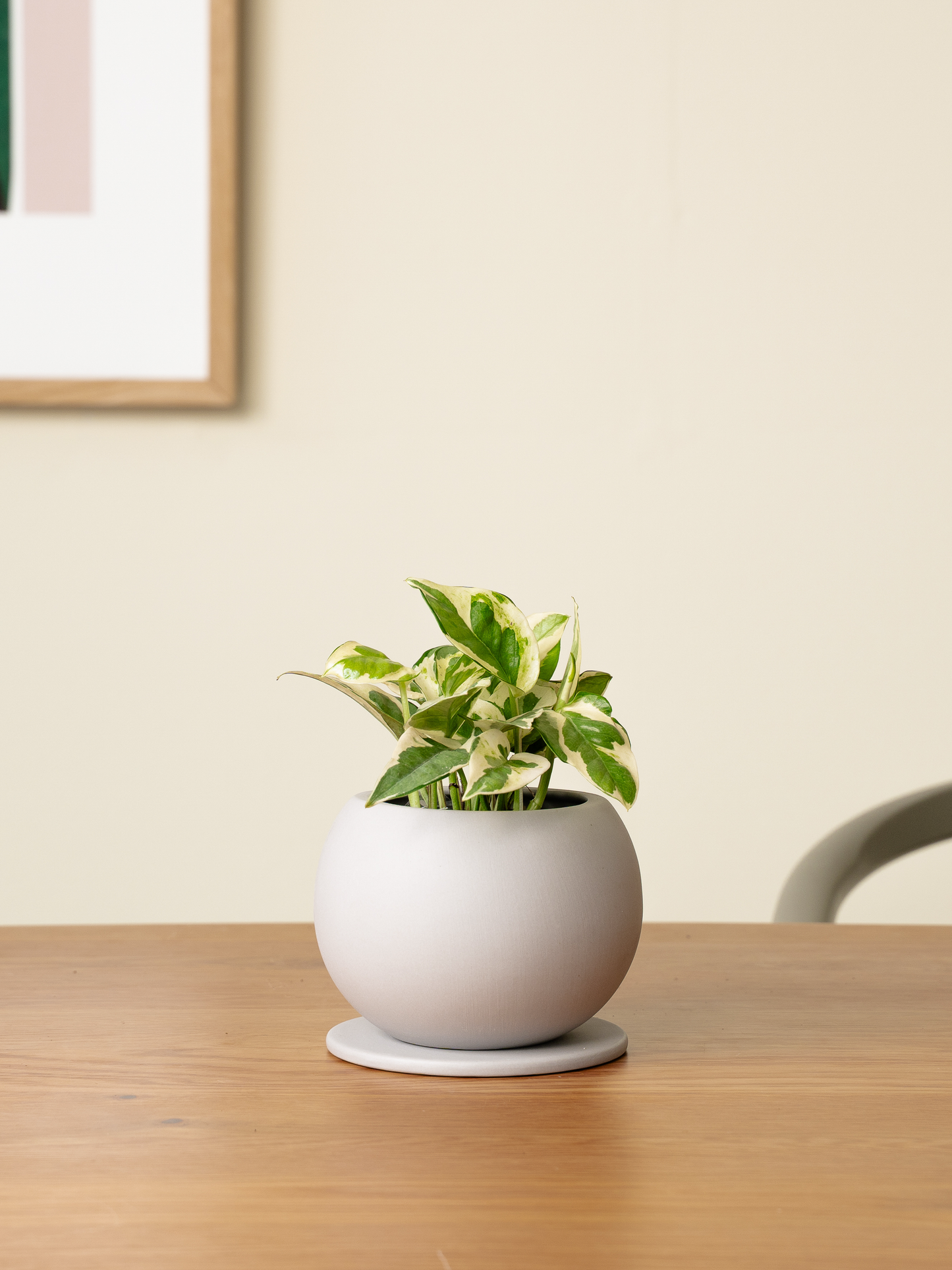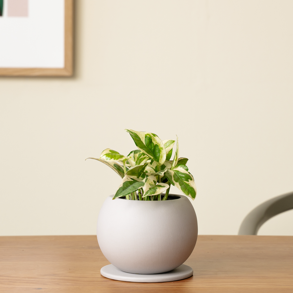 ポトスエンジョイは緑と白のコントラストが美しい観葉植物です。茎が伸びて垂れ下がってくるので、シェルフなどに高い場所に置いて飾ることをおすすめします。