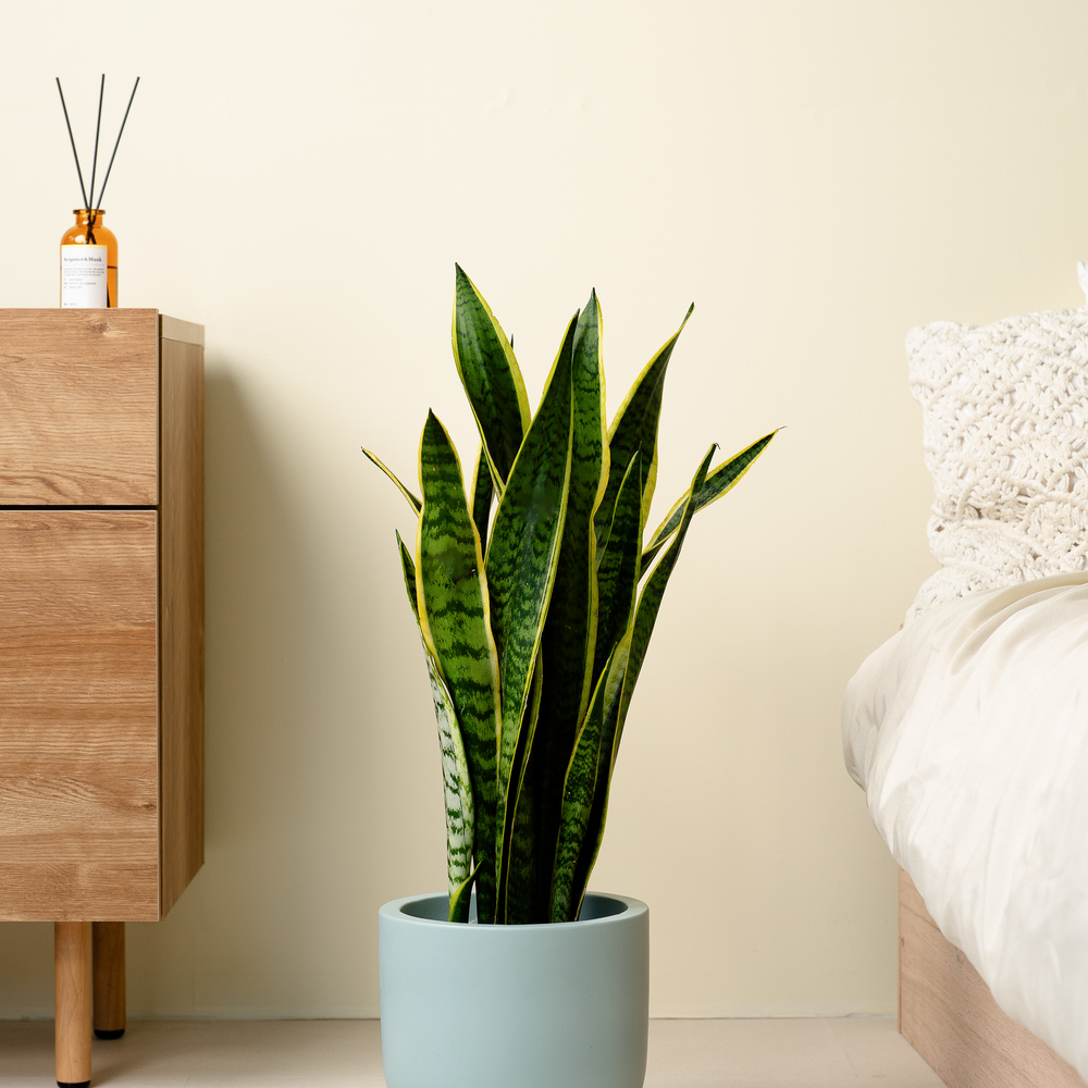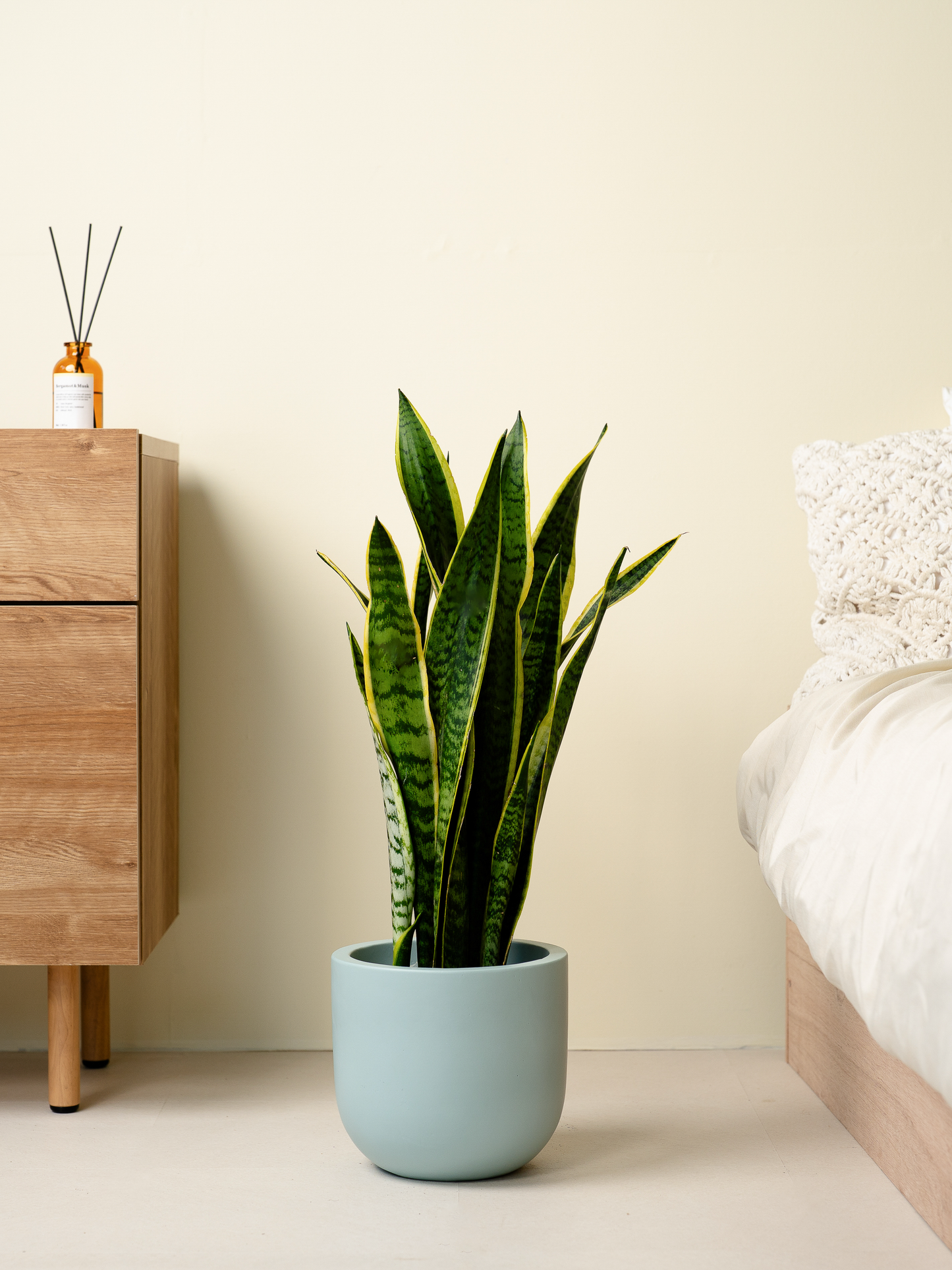 サンセベリアは、空気清浄効果が高く、お部屋の空気を循環させてくれる植物です。黄色と緑のコントラストが美しく、お部屋にアクセントとしておくと明るい雰囲気になります。非常に育てやすいため、初心者の方におすすめの植物です。