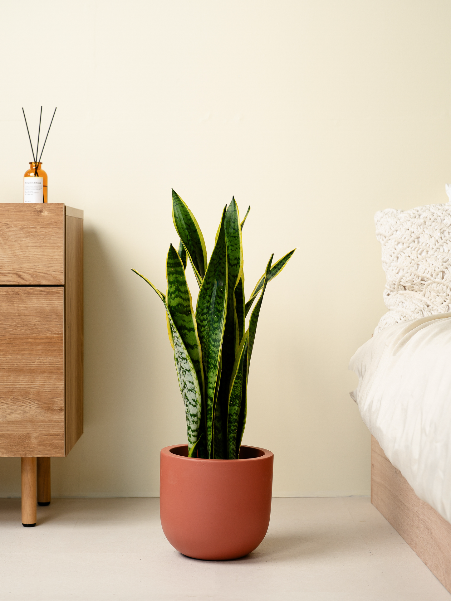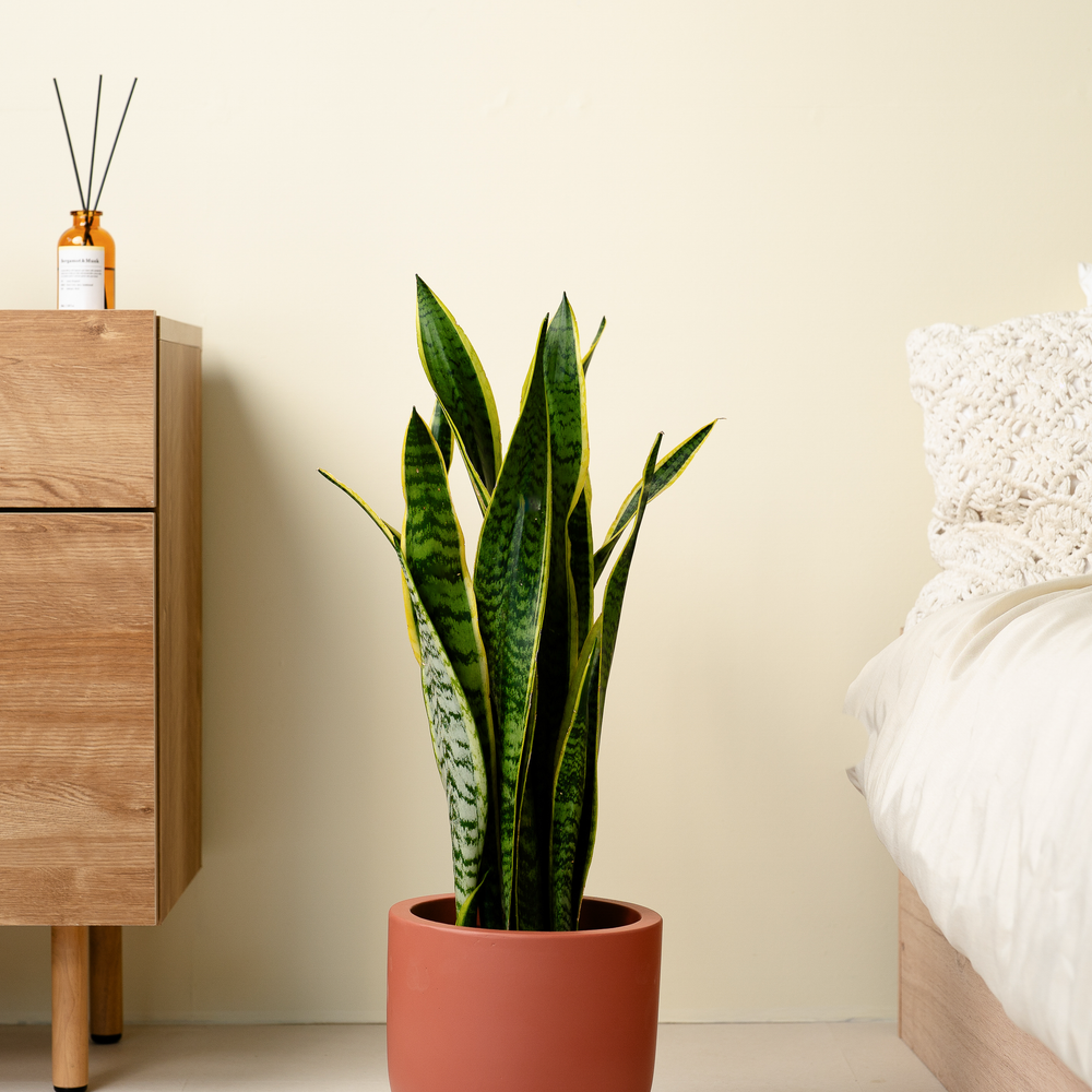 サンセベリアは、空気清浄効果が高く、お部屋の空気を循環させてくれる植物です。黄色と緑のコントラストが美しく、お部屋にアクセントとしておくと明るい雰囲気になります。非常に育てやすいため、初心者の方におすすめの植物です。