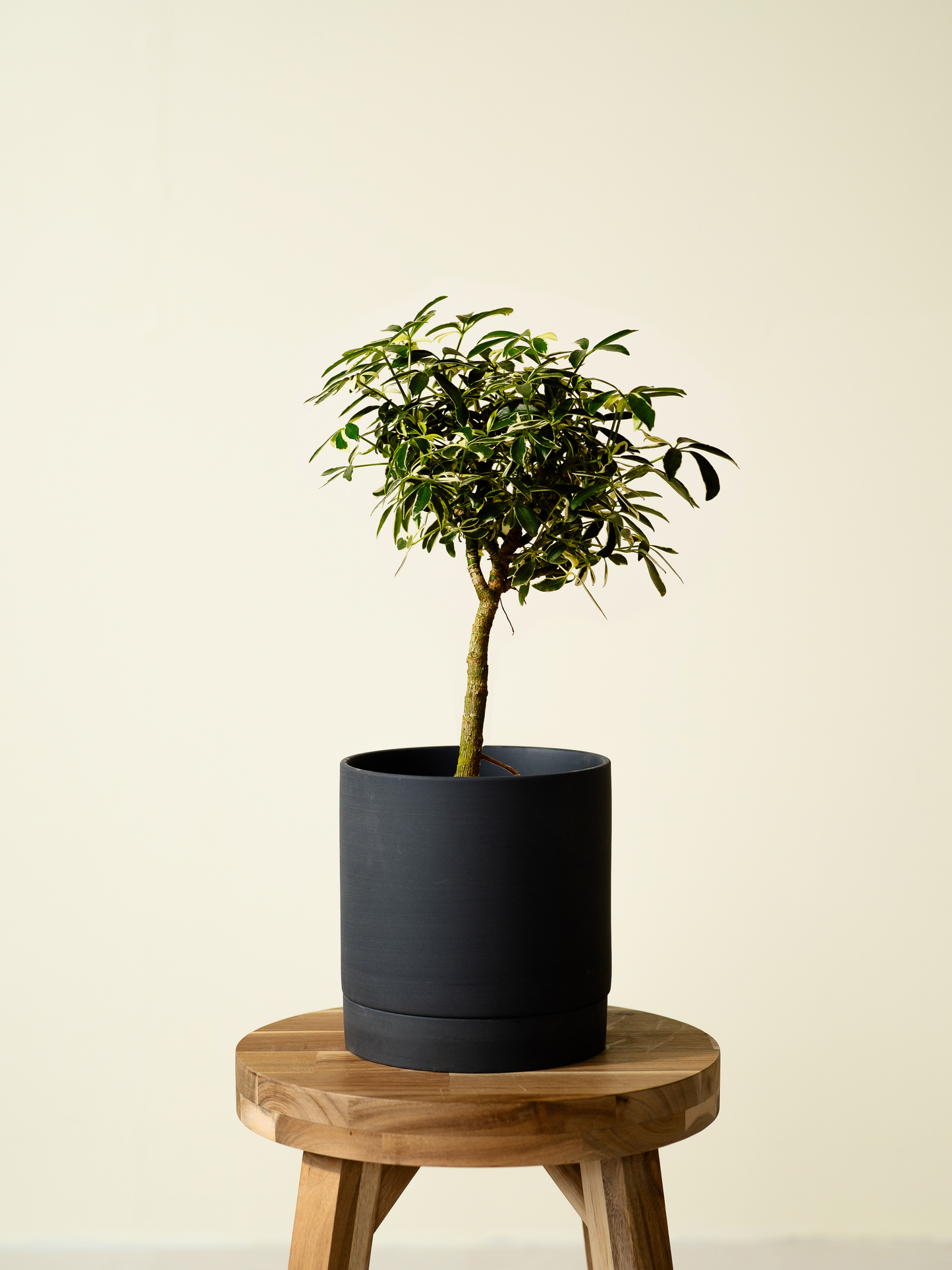 シェフレラムーンドロップは、黄色の模様が入ったインテリア性の高い観葉植物です。コンパクトなサイズに収まるため管理がしやすく、卓上のアクセントになってくれます、木の質感も小さいながらおしゃれさも足してくれるため、他の植物と雰囲気を変えたいときにもおすすめです。