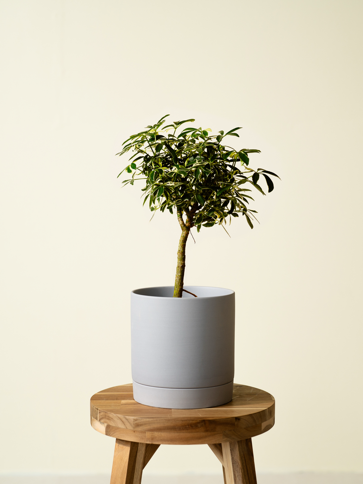 シェフレラムーンドロップは、黄色の模様が入ったインテリア性の高い観葉植物です。コンパクトなサイズに収まるため管理がしやすく、卓上のアクセントになってくれます、木の質感も小さいながらおしゃれさも足してくれるため、他の植物と雰囲気を変えたいときにもおすすめです。