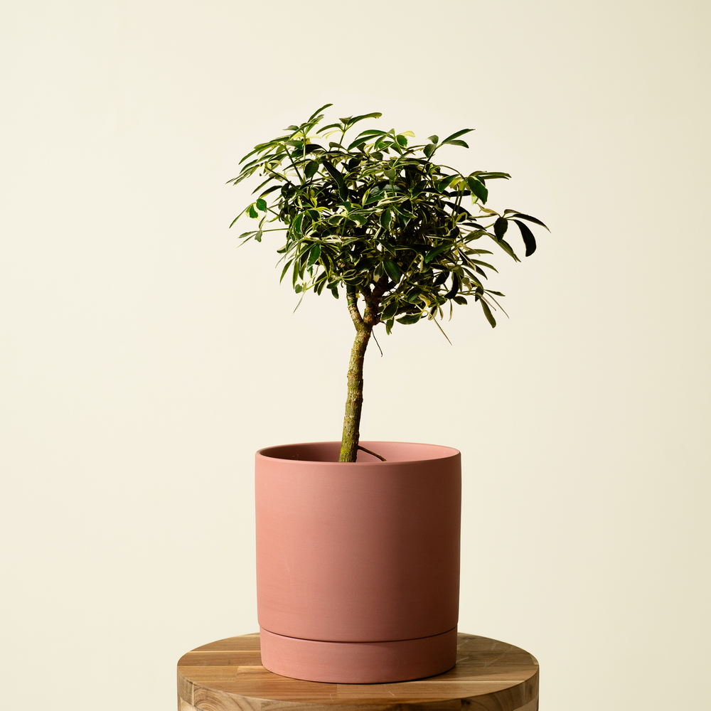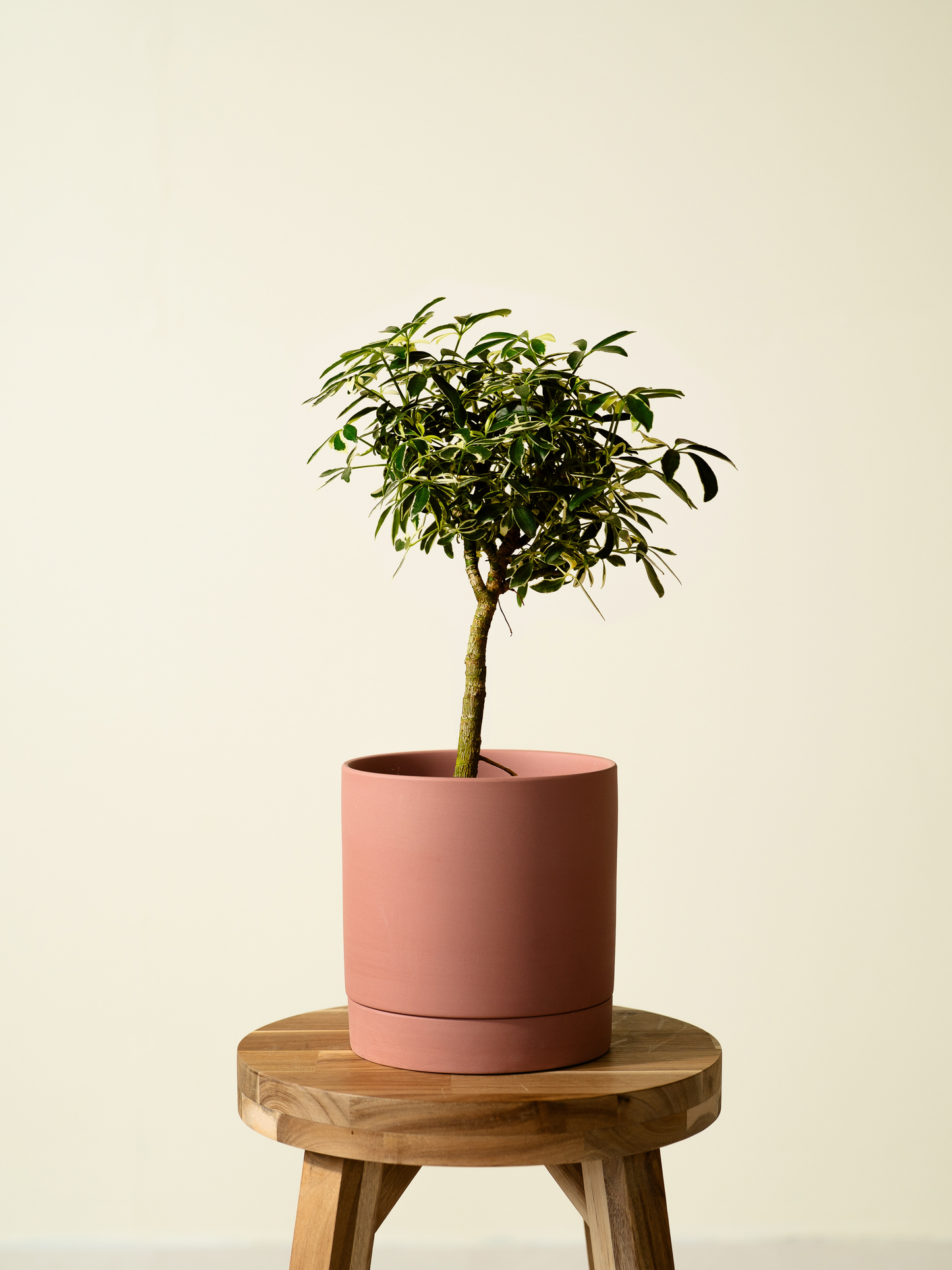 シェフレラムーンドロップは、黄色の模様が入ったインテリア性の高い観葉植物です。コンパクトなサイズに収まるため管理がしやすく、卓上のアクセントになってくれます、木の質感も小さいながらおしゃれさも足してくれるため、他の植物と雰囲気を変えたいときにもおすすめです。