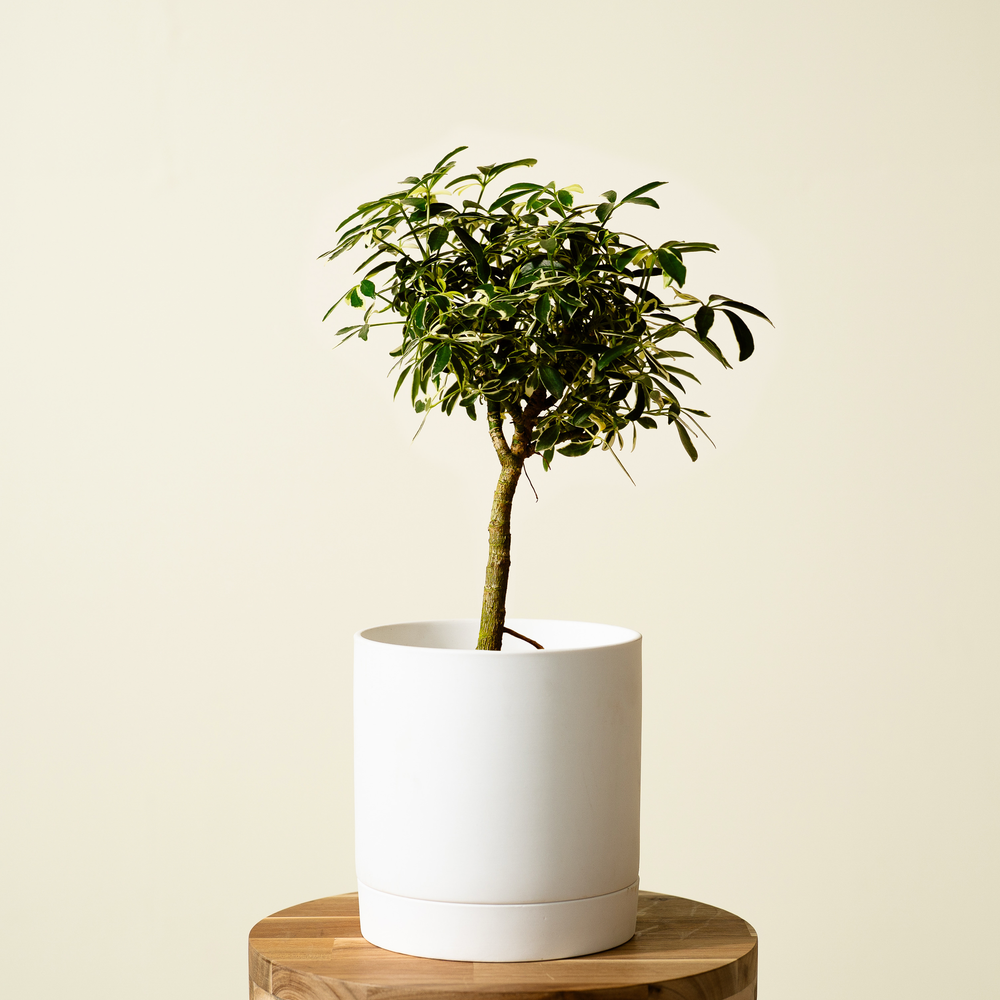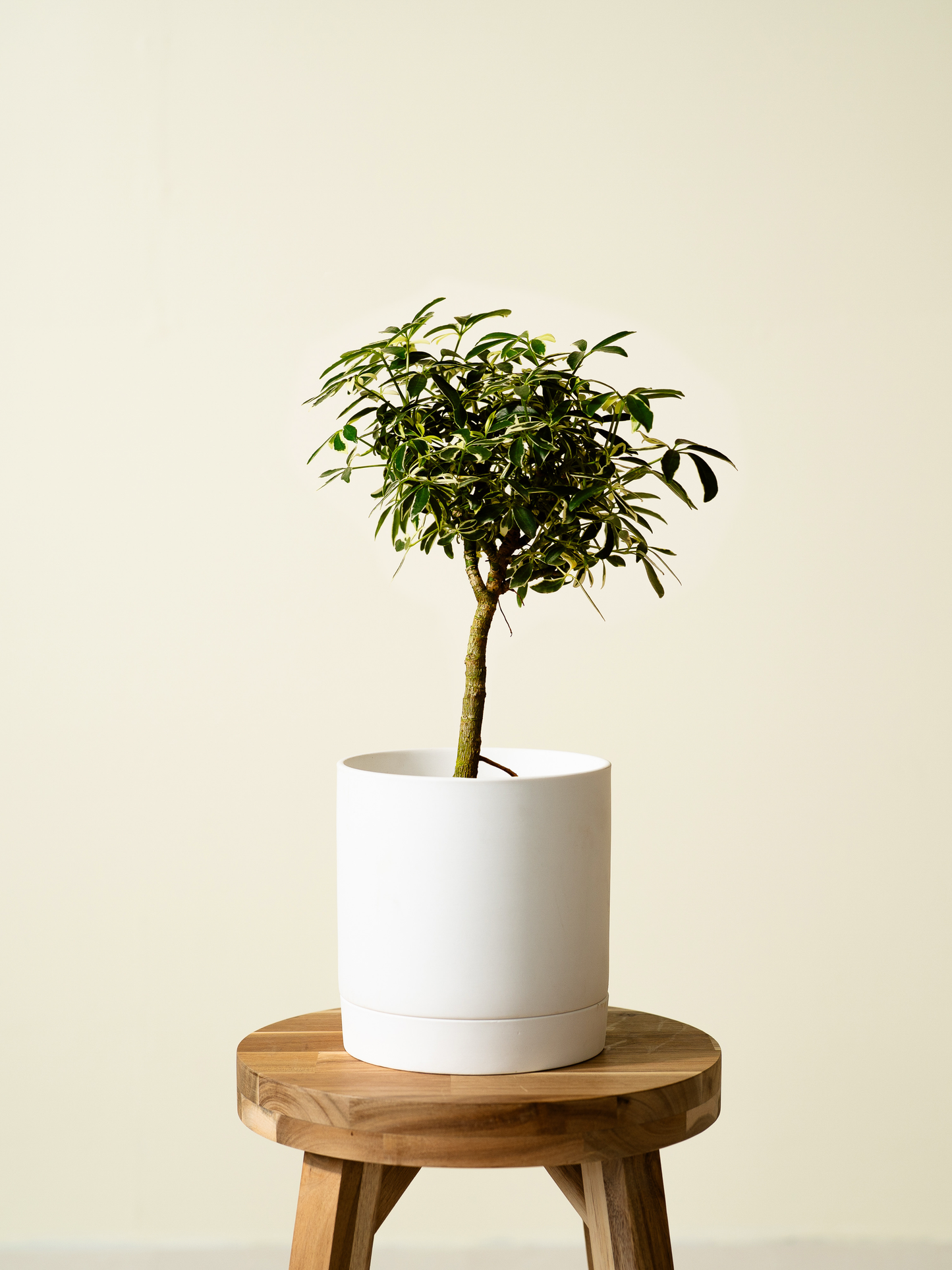 シェフレラムーンドロップは、黄色の模様が入ったインテリア性の高い観葉植物です。コンパクトなサイズに収まるため管理がしやすく、卓上のアクセントになってくれます、木の質感も小さいながらおしゃれさも足してくれるため、他の植物と雰囲気を変えたいときにもおすすめです。