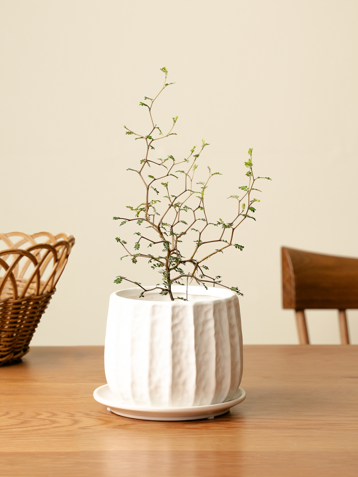 ソフォラは細い枝に小さな葉がつくかわいらしい見た目で人気観葉植物です。不思議で可愛らしい草姿から「メルヘンの木」とも呼ばれています。