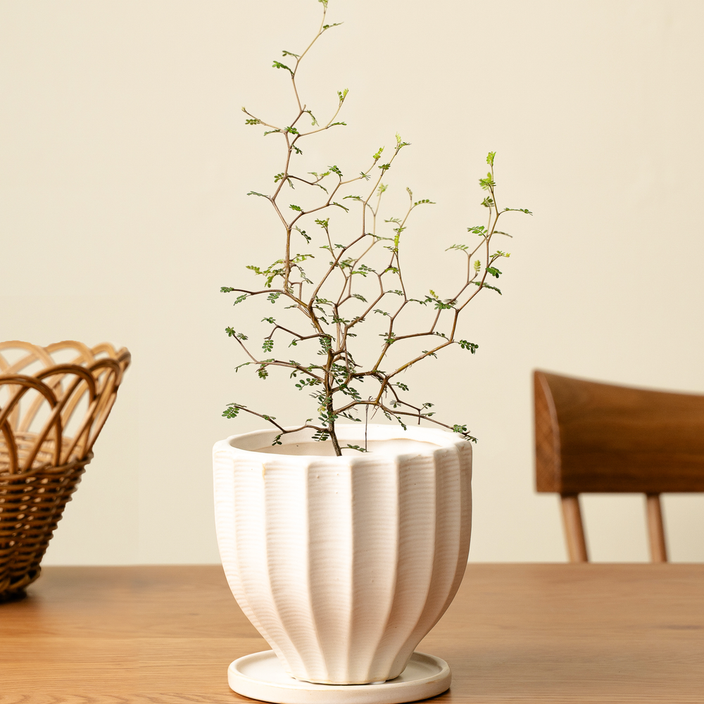 ソフォラは細い枝に小さな葉がつくかわいらしい見た目で人気観葉植物です。不思議で可愛らしい草姿から「メルヘンの木」とも呼ばれています。