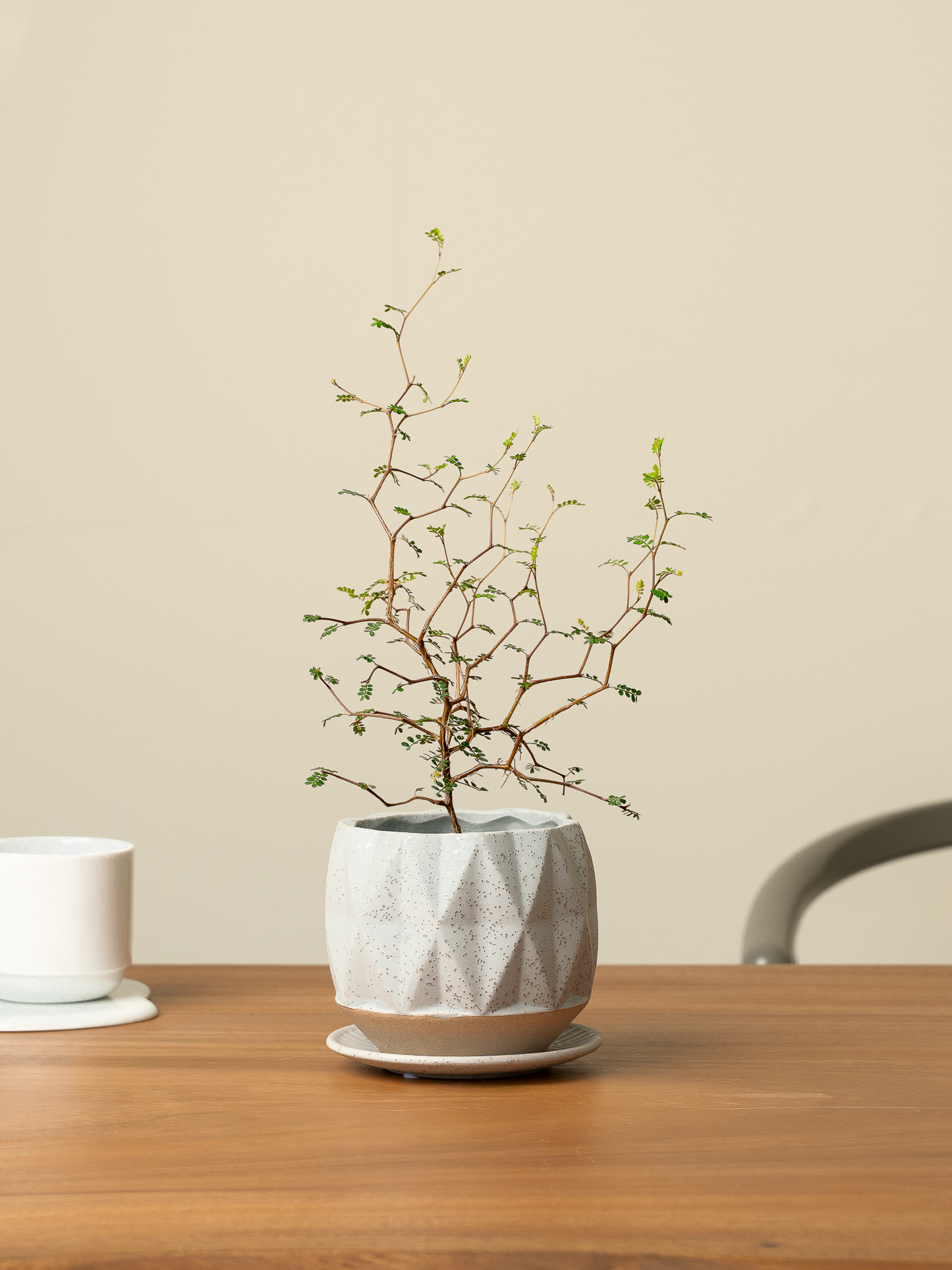 ソフォラは細い枝に小さな葉がつくかわいらしい見た目で人気観葉植物です。不思議で可愛らしい草姿から「メルヘンの木」とも呼ばれています。