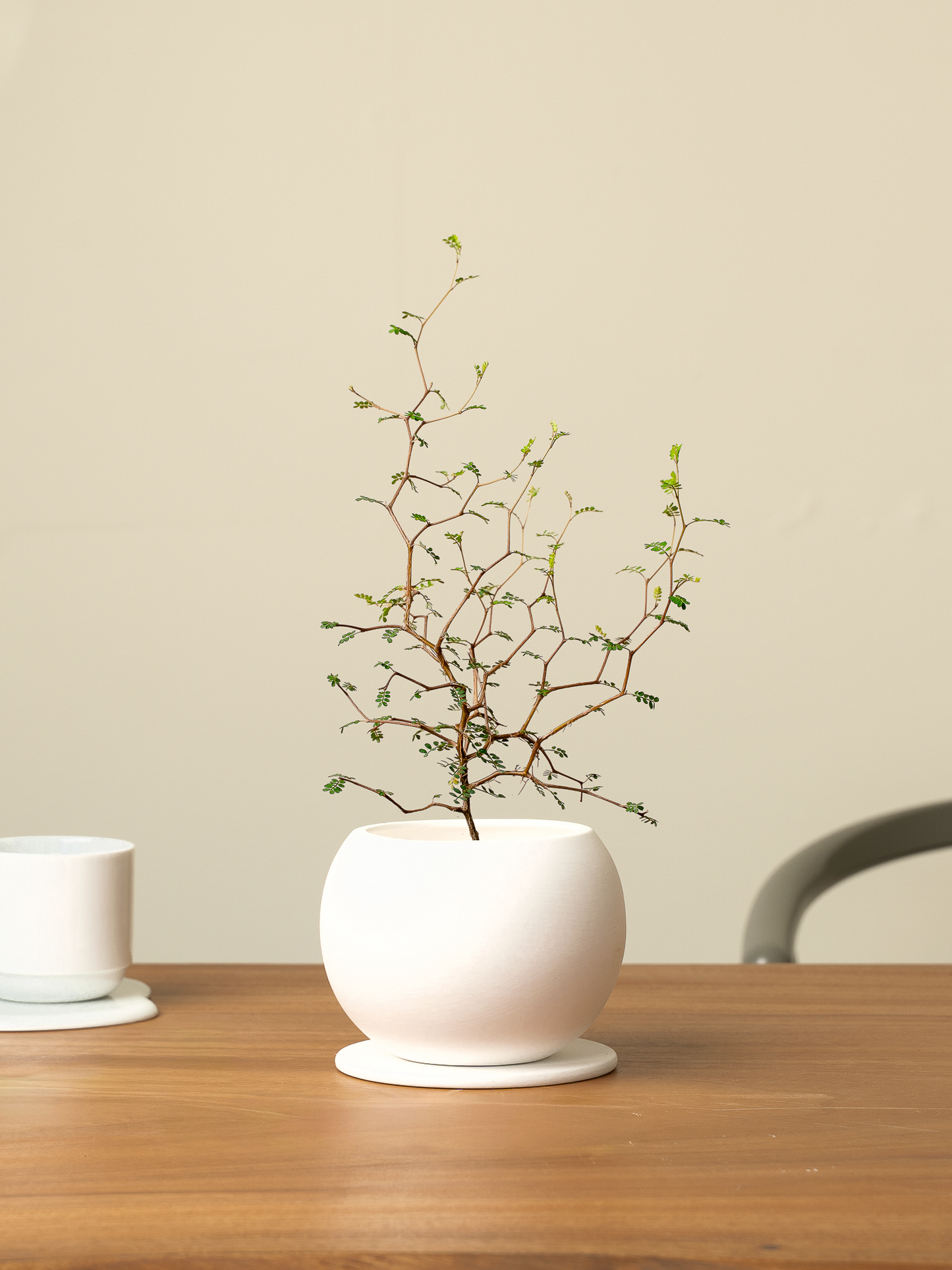 ソフォラは細い枝に小さな葉がつくかわいらしい見た目で人気観葉植物です。不思議で可愛らしい草姿から「メルヘンの木」とも呼ばれています。