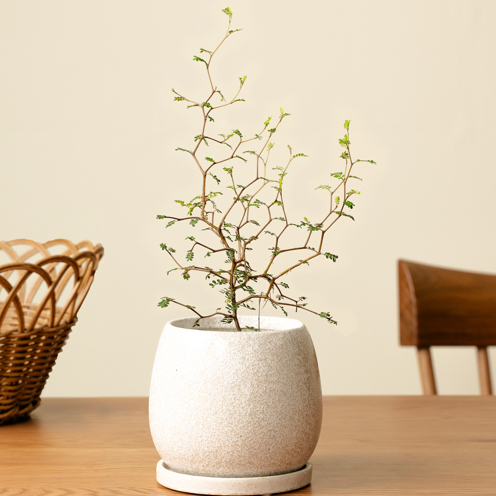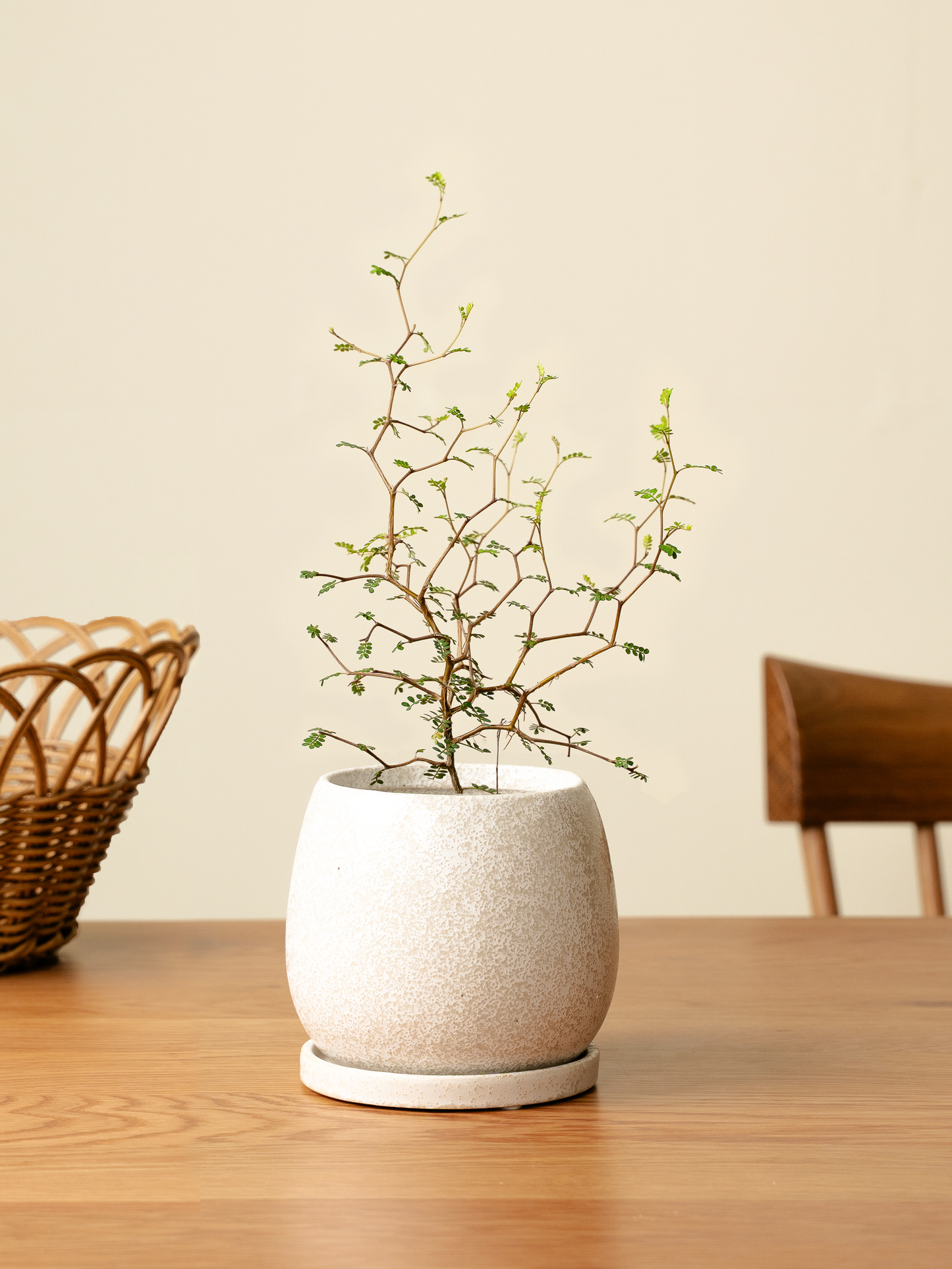 ソフォラは細い枝に小さな葉がつくかわいらしい見た目で人気観葉植物です。不思議で可愛らしい草姿から「メルヘンの木」とも呼ばれています。