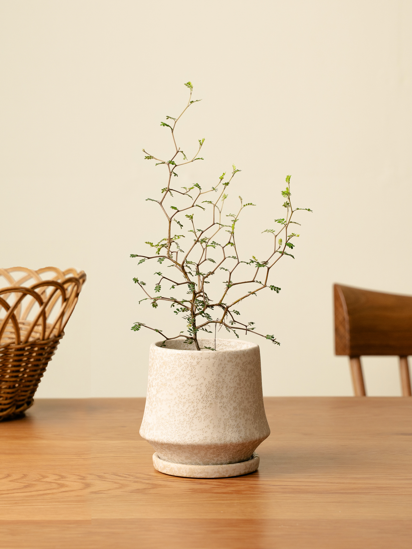 ソフォラは細い枝に小さな葉がつくかわいらしい見た目で人気観葉植物です。不思議で可愛らしい草姿から「メルヘンの木」とも呼ばれています。
