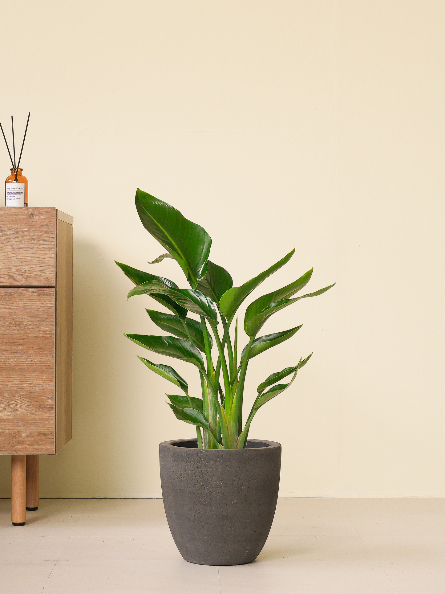 オーガスタは大きな葉が放射状に広がる、光沢のある葉が特徴的な観葉植物です。リゾート感がある植物なので、アジアンテイストやホテルライクなお部屋とよく合います。