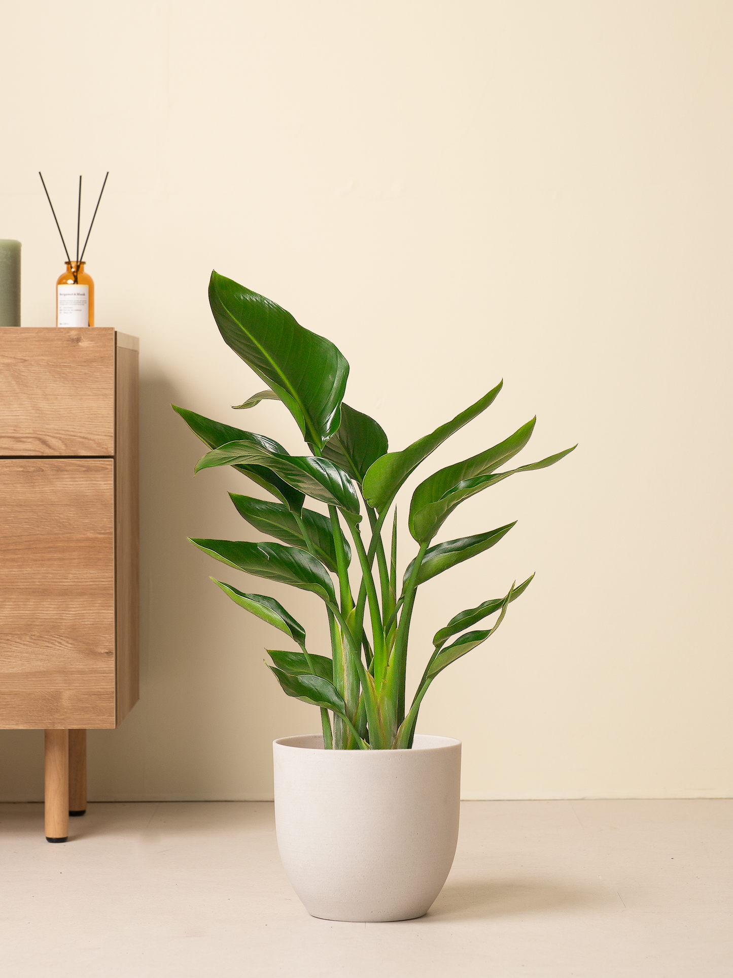 オーガスタは大きな葉が放射状に広がる、光沢のある葉が特徴的な観葉植物です。リゾート感がある植物なので、アジアンテイストやホテルライクなお部屋とよく合います。
