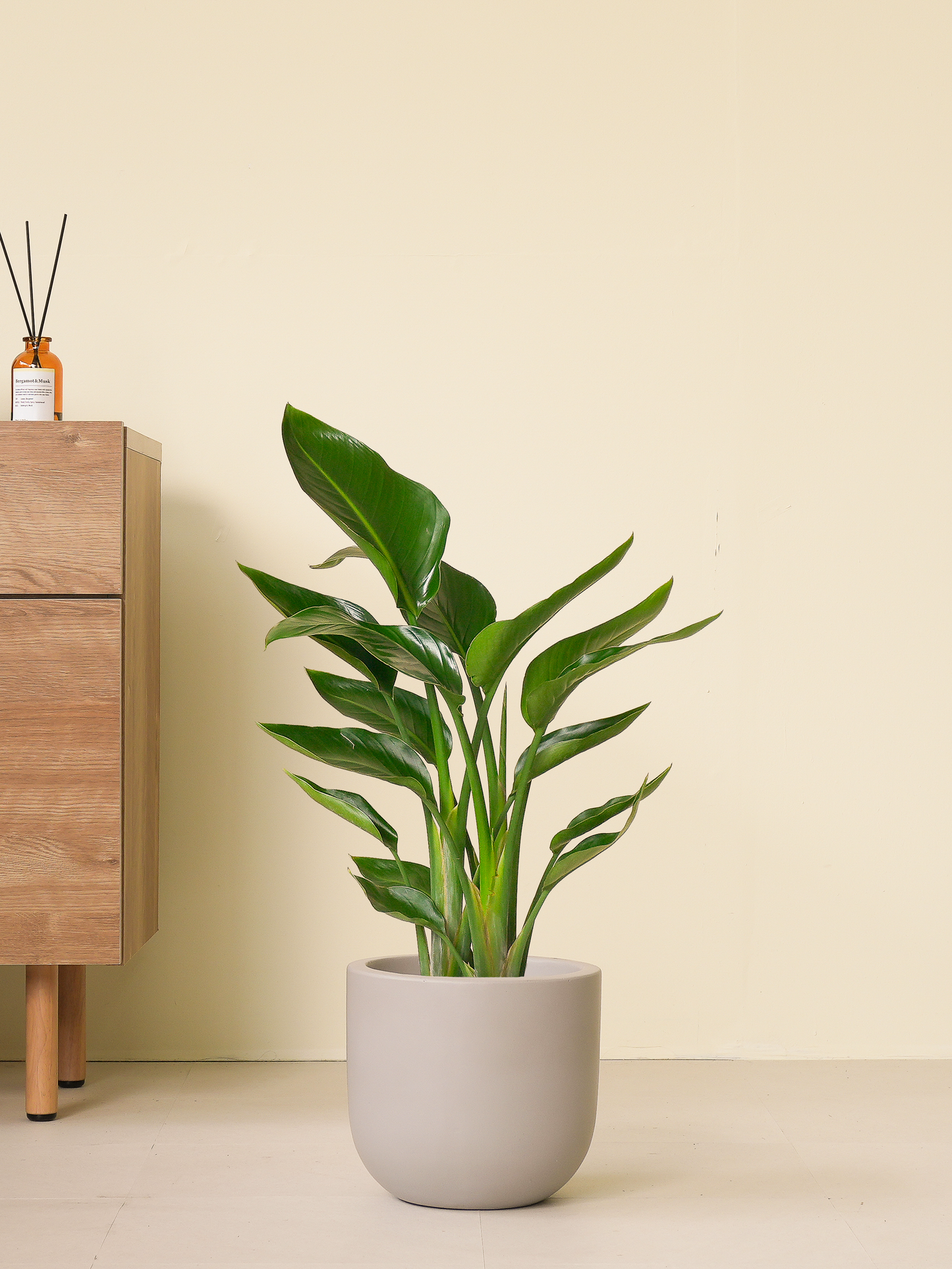 オーガスタは大きな葉が放射状に広がる、光沢のある葉が特徴的な観葉植物です。リゾート感がある植物なので、アジアンテイストやホテルライクなお部屋とよく合います。