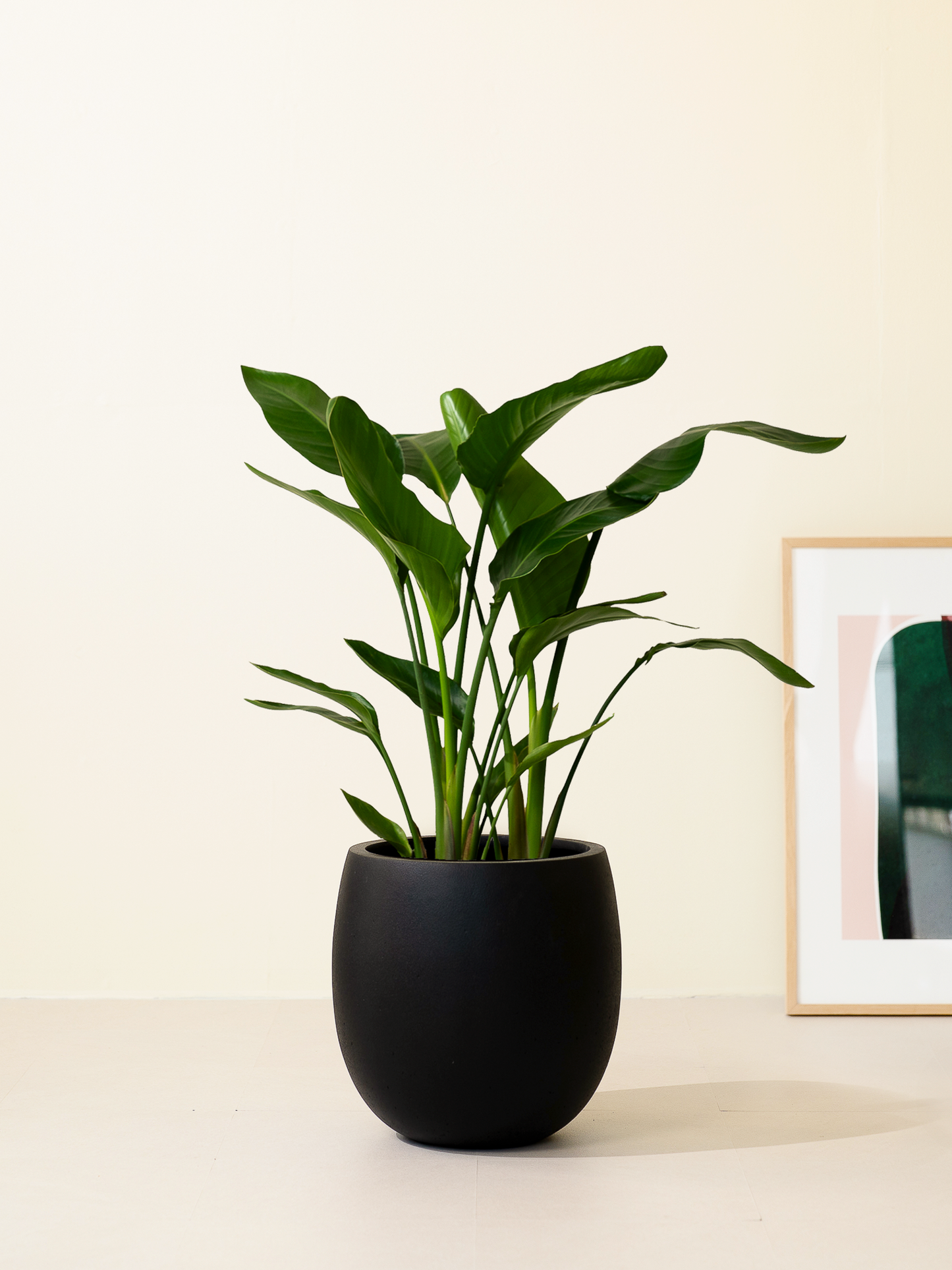 オーガスタは大きな葉が放射状に広がる、光沢のある葉が特徴的な観葉植物です。リゾート感がある植物なので、アジアンテイストやホテルライクなお部屋とよく合います。